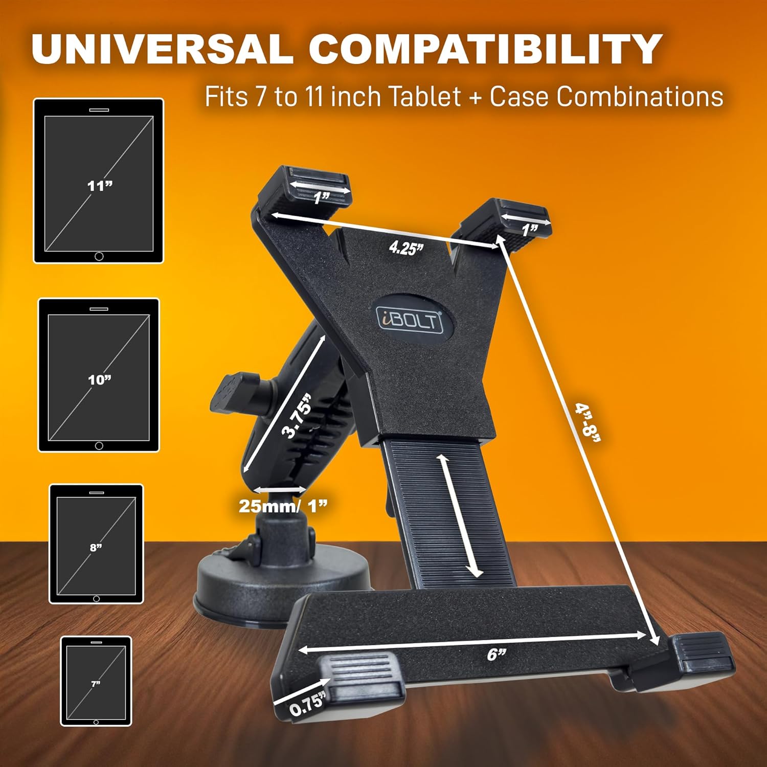 iBolt Tabdock BizMount -Holder/Mount with Suction Cup Base- for Your Windshield, Dashboard, or Desk - Compatible with All 7"-10" Tablets: iPad, Samsung Galaxy Tab, Google Nexus