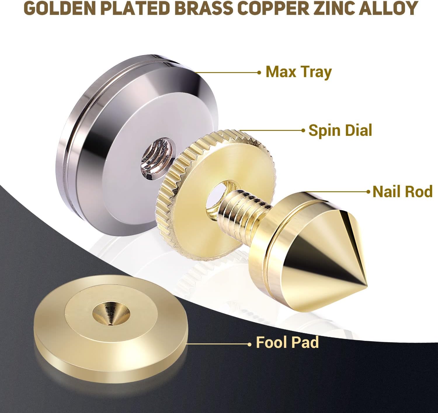 - 【Adding a Tasteful Look】-- These attractive spikes are precision machined from premium aluminum alloy and then plated with a durable golden finish. With a nice cut and polish finish, They are not only do a great job at further isolating, but also do a great job at adding a tasteful look to the table.