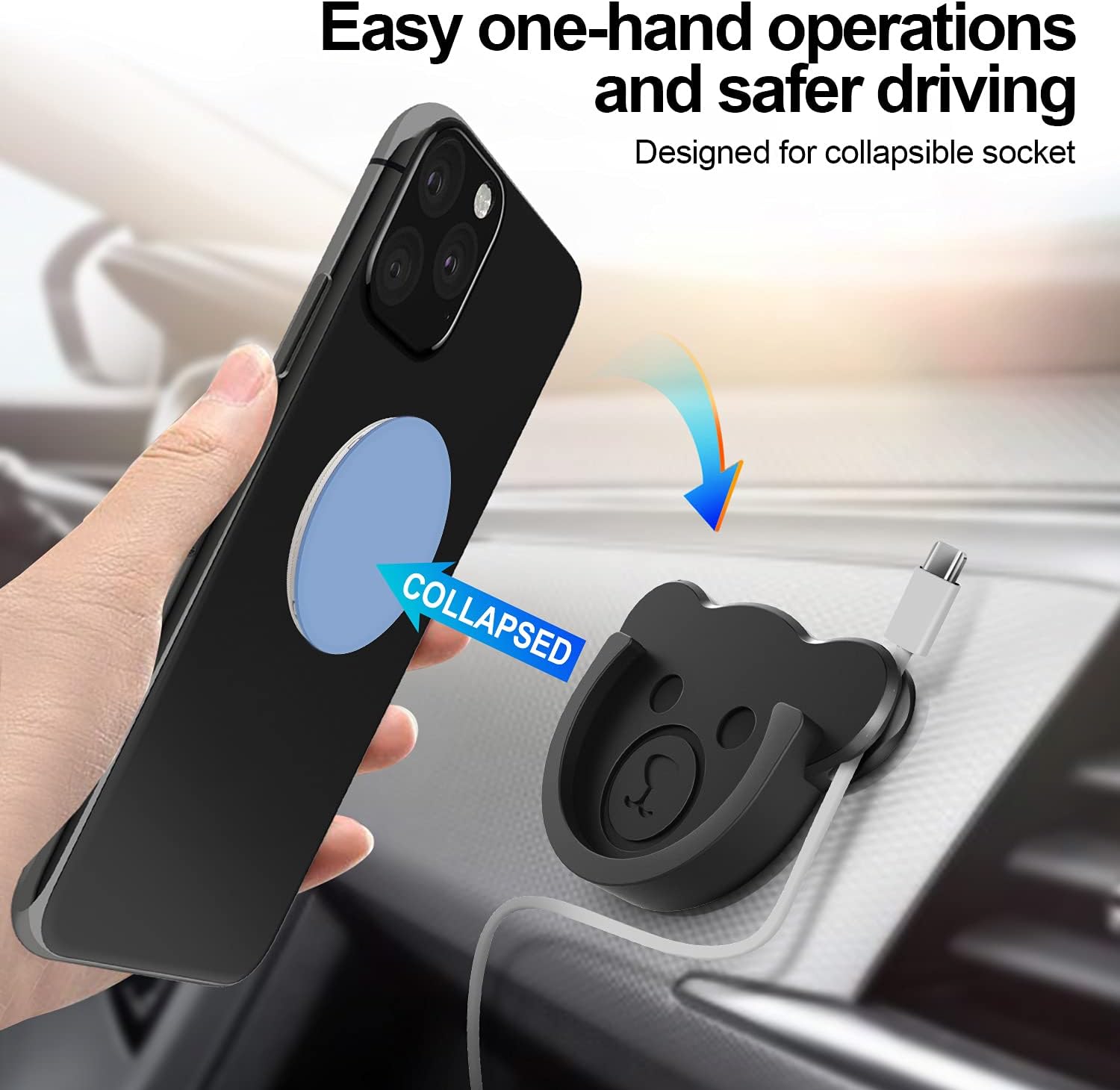 - š»[Designed for Collapsible Socket]: More practical car phone mount with delicate cute bear style design appearance. You could use this flexible car grip mount to work with your socket mount on the back of the phone. Such Small that's unnoticeable when not in use and can be adjustable for any directions what you want to keep the phone reach easily and your eyes on the road while driving.