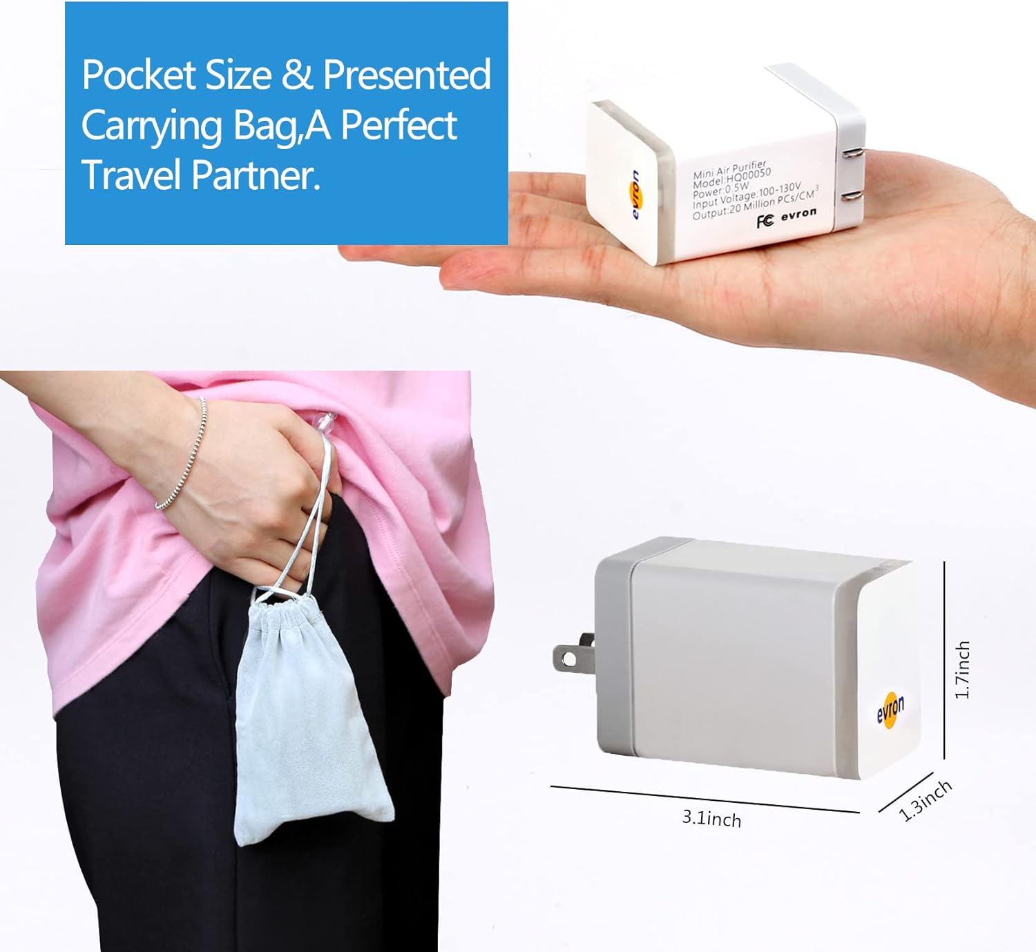 evron Plug-In Air Ionizer for Home & Travel, 20 Million Negative Ions/sec, Compact & Foldable Prongs, No Filter Needed, Quiet Odor Eliminator for Room, Pet, Bathroom, Hotel (Blue light 1 Pack)