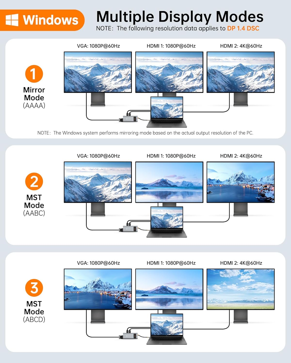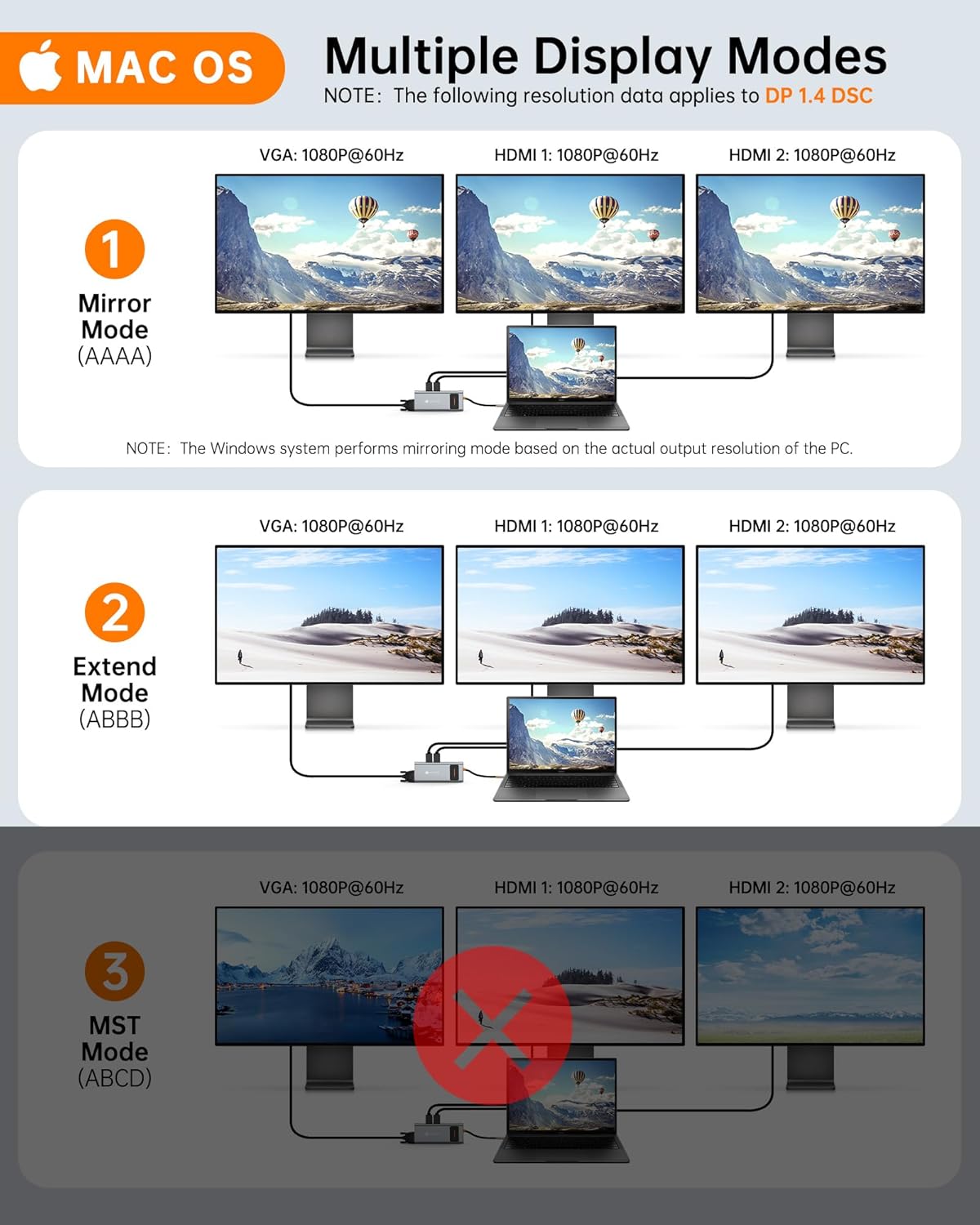 - Docking Station Dual Monitor: Dell docking station will help you easily achieve dual-monitor and triple-monitor display, making your work/life more efficient;( Triple Display 2 HDMI 4KVGA 1080P) β Please Note Before Purchase: Only the built-in usb c port of your laptop is the fully functional port, you can use the dual/triple monitor function if you are not sure, please send the laptop model and we will help you to check if this docking station is compatible for your device