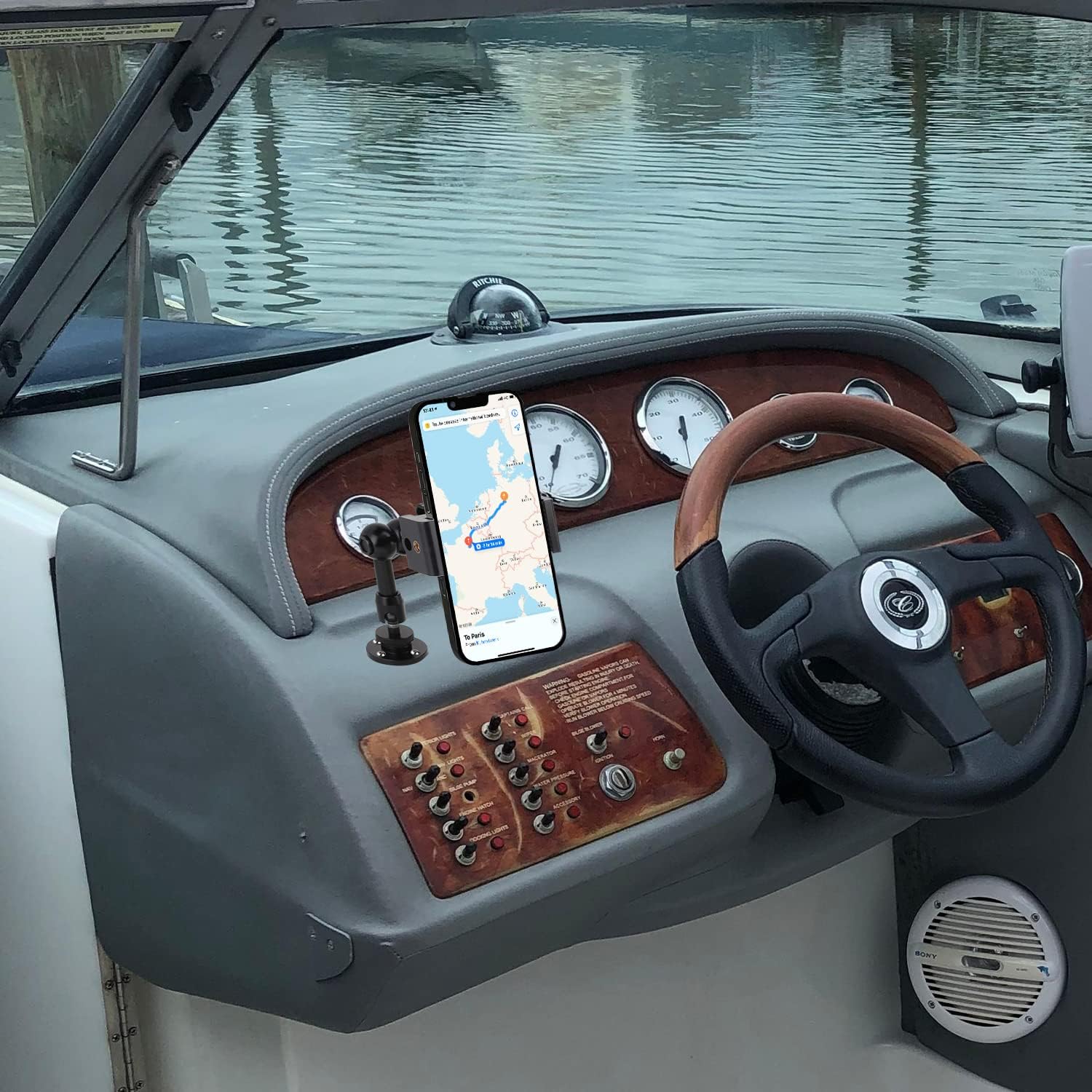 Drill Base Truck Phone Stand for 3.5~7.5 inches iPhone/HTC/LG/Nexus/Huawei/Smart Phones, Fit for Truck, Car,Van, Vehicles, 360°Adjustable Aluminum Alloy Mount