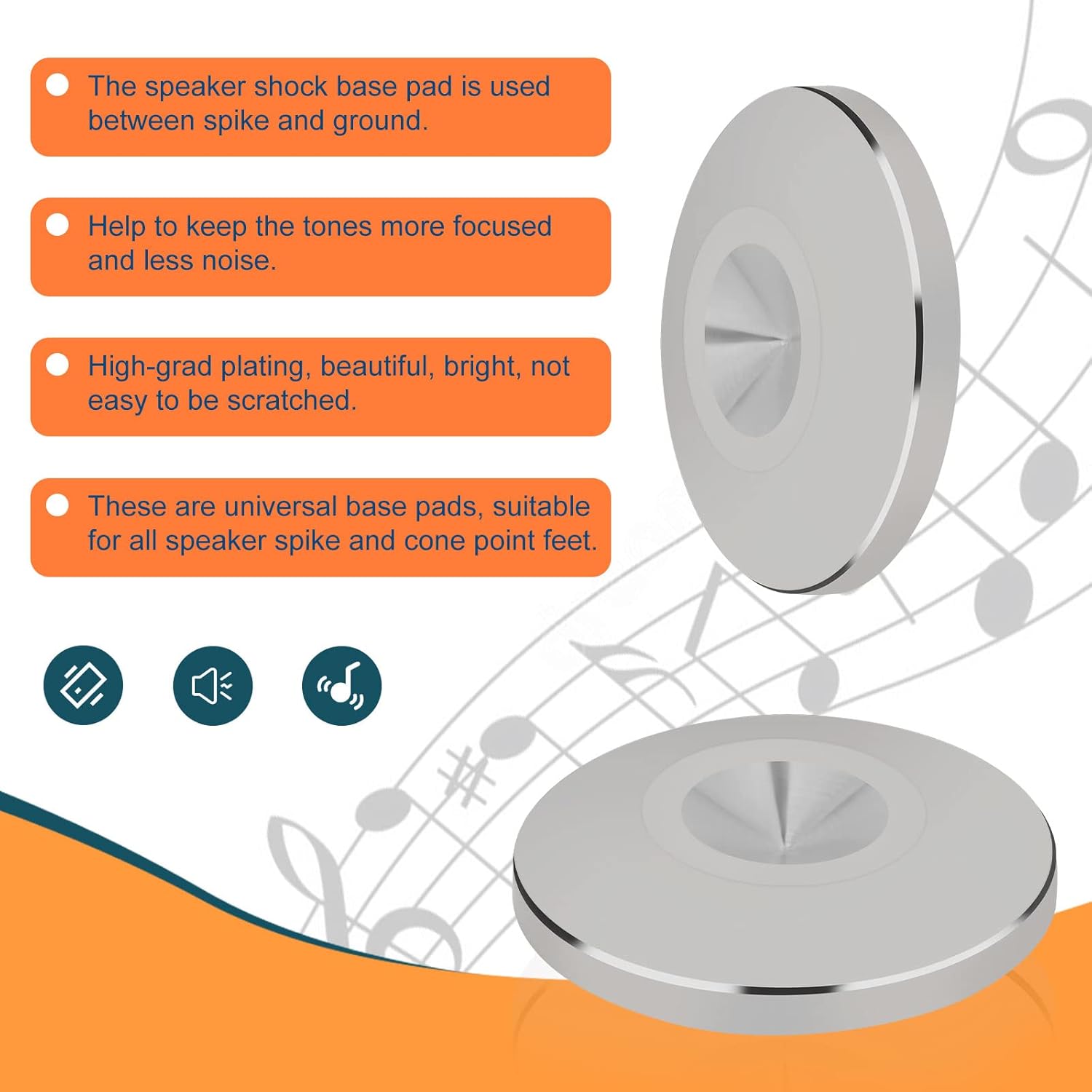 - ā{High Hardness and Density}---The 304 stainless steel audio base cones are with low harmonic vibration point and high damping, manage the energy of the speaker to reduce vibrations resonating, eliminate dissonant sound, will never wear out due to vibration like other zinc alloy copper brass isolation pad.