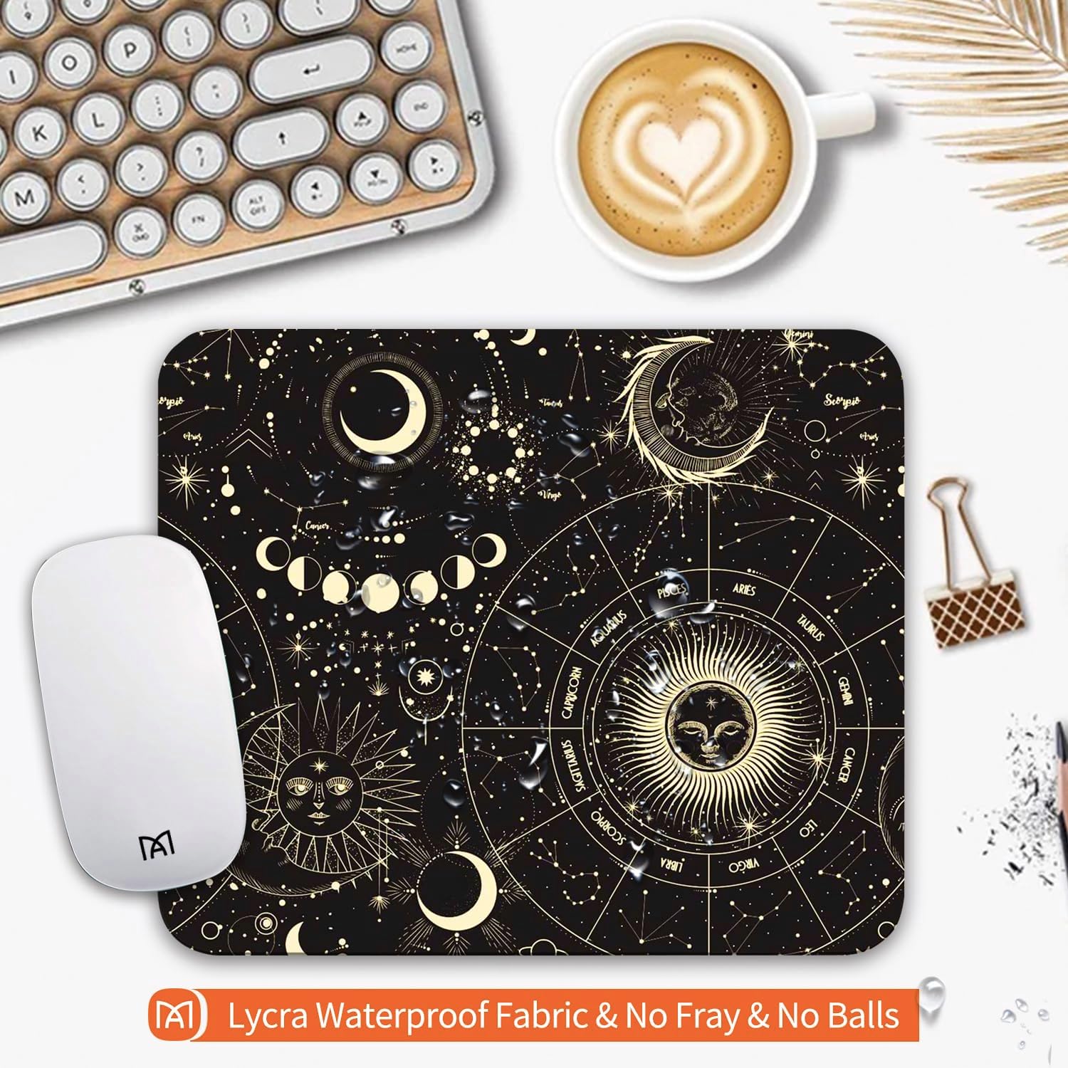 Square Mouse Pad Moon Sun, Personalized Premium-Textured Custom Mouse Mat Design, Washable Mousepad Cloth, Non-Slip Rubber Base Computer Mouse Pads for Wireless Mouse
