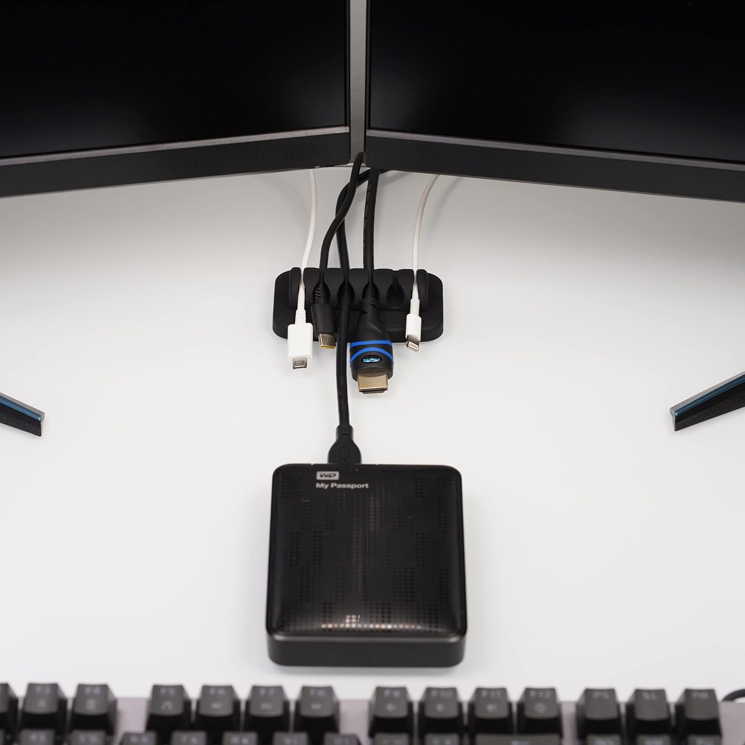 - PATENTED DESIGN: The ENVISIONED Cable Organizer is one-of-a-kind, holding a patent for its special design. It supports small and large cables, including Apple lightning cables, USB, HDMI and network cables. Its compact design maximizes your desk space (measures 3" x 2" x 1") while providing 6 slots to hold your cables!
