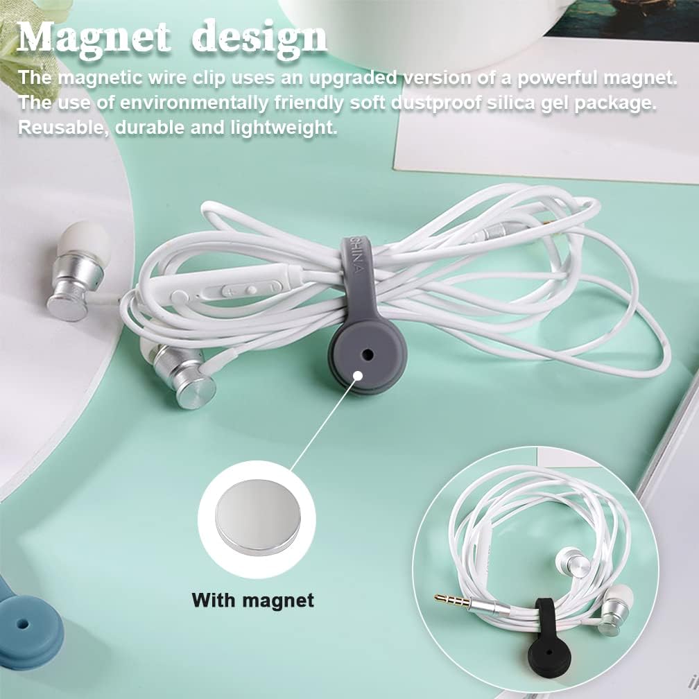 - ① The magnetic wire clamp is wrapped with soft dust-proof silica gel, built-in upgrade magnet, strong magnetic force. Reusable, durable, lightweight and portable.