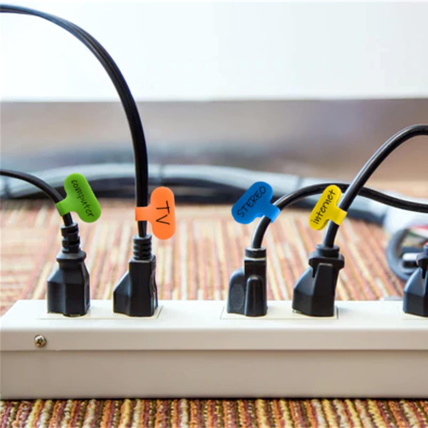 - MAKES ID A SNAP - Everybody has a bunch of electronic cables they can't identify, whether they're plugged into stuff or gathering dust at the bottom of a drawer... You may get really sick of it taking half an hour to figure out what was what every time. Use these to label all your cords at the power strip, from larger HDMI to the much slender iPhone charger so you know what you're unplugging under your desk or behind your furniture. NEVER unplug the wrong thing!