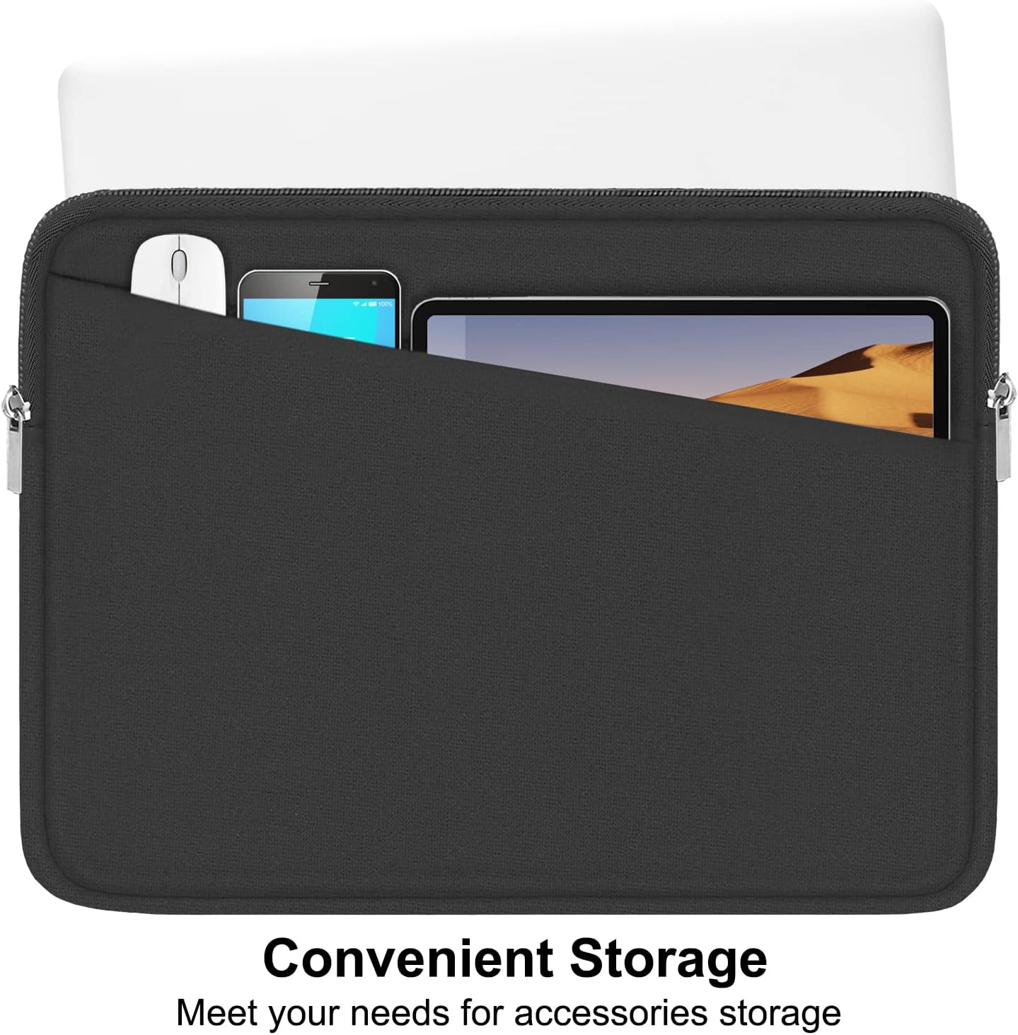 - EXTERNAL DIMENSIONS: 15.5 x 11 x 0.8 inches, internal dimensions: 15.2 x 10.8 x 0.7 inches, Except the main compartment for your laptop,Our Laptop Case Also Comes With A First External Pocket For Additional Storage Such As Charger, power adaptors, cables, Portable Mouse, Keys, Cards,Pens,Cell Phone and other accessories etc.
