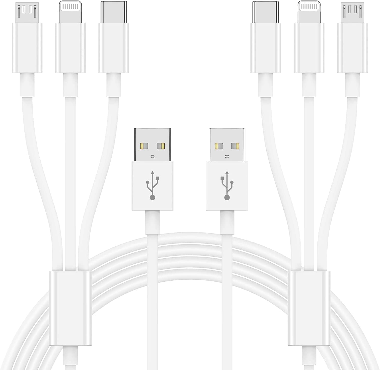 Multi Charger Cable 6Ft 2Pack, 3 in 1 Charging Cord, Universal Phone Charger, Multiple Charger Wire USB-A to Lightning/USB-Type C/Micro USB Connectors for Cellphone, Tablets and More (Charging Only)