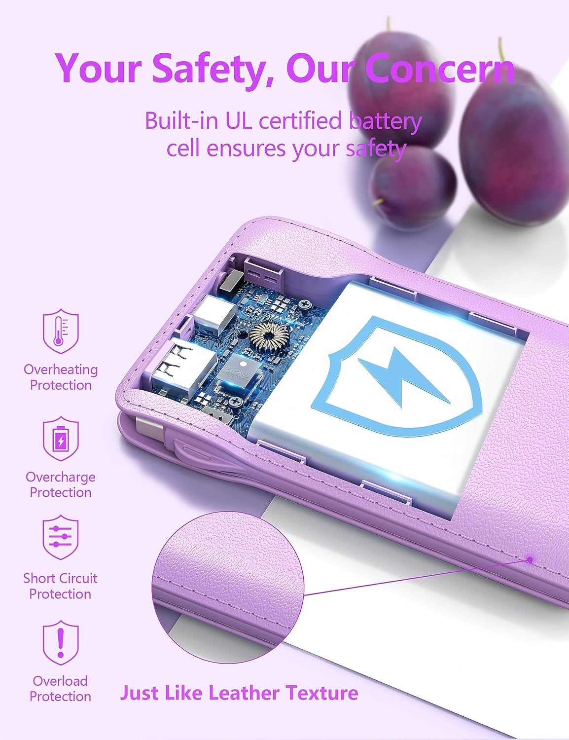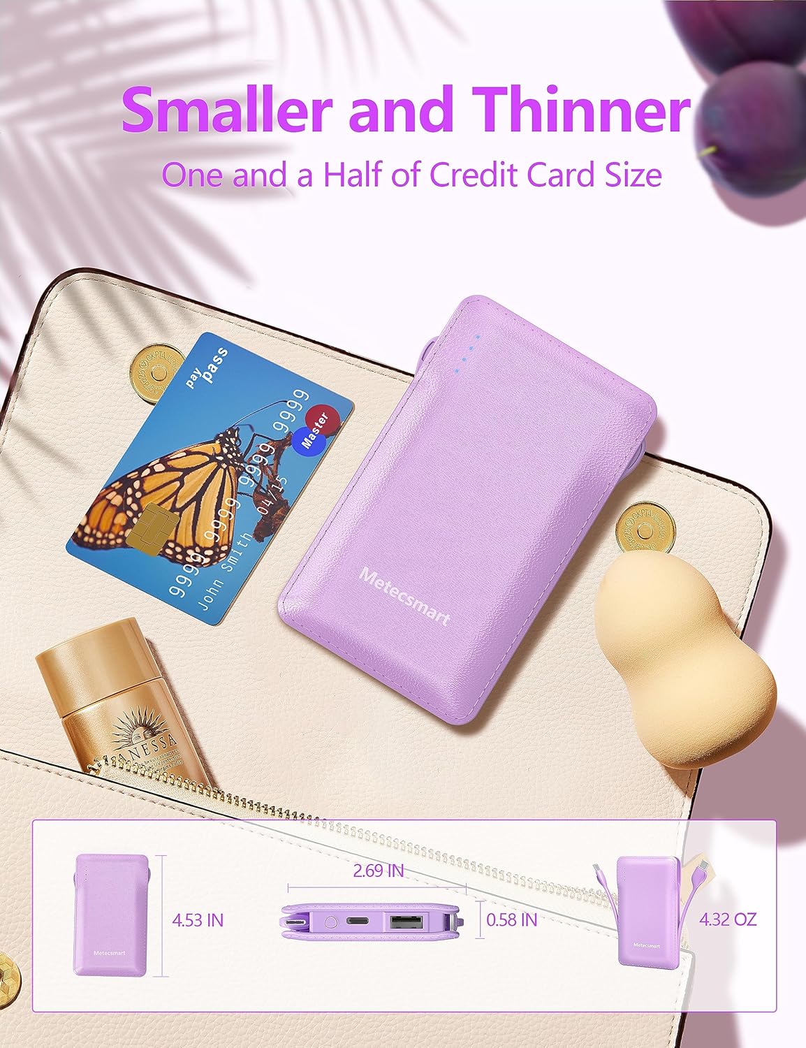 - Versatile Recharging: Tiny body but multiple functional! This battery bank supports three kinds of fast output and one USB-C input as follow shows: USB-A output port; USB-C output/input port; two cables compatible with smartphones and Type-C phones; The various charging options at your fingertips! This charger supports pass-through charging, allowing you to use your device while it's plugged in and recharging.It can charge multiple devices simultaneously