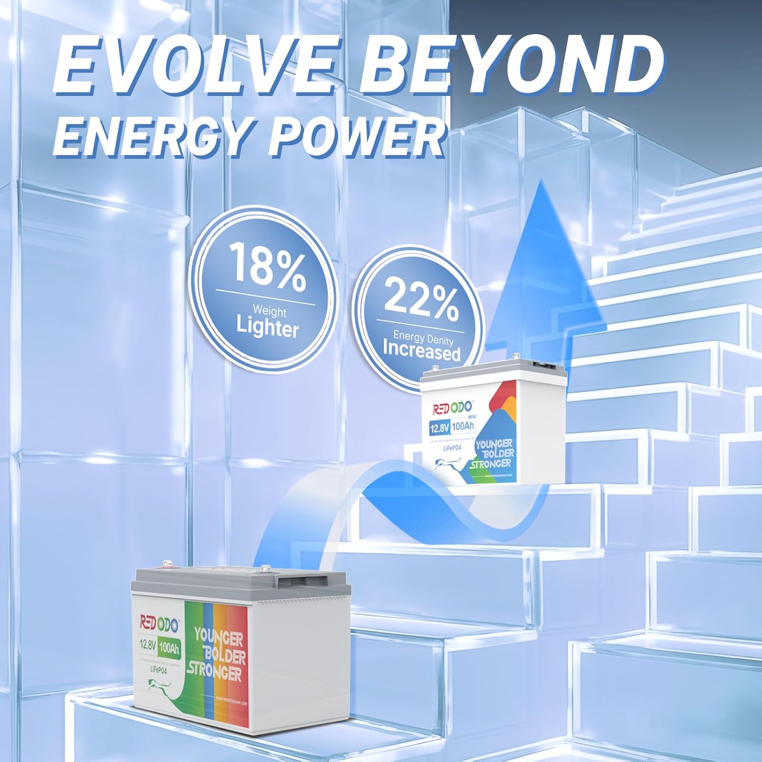 - 【35% Smaller and 22% Lighter】 Measures in 10.23x5.23x8.95 inches and 19.84 lbs, Redodo 12V 100Ah Mini LiFePO4 battery is 35% smaller and 22% lighter compared to 12V 100Ah group 31 LiFePO4 battery, while support the same energy of 1280Wh. Let alone 38% smaller and 69% lighter compared to other 12V 100Ah Lead Acid batteries. This mini LiFePO4 battery is more compact and better save space.