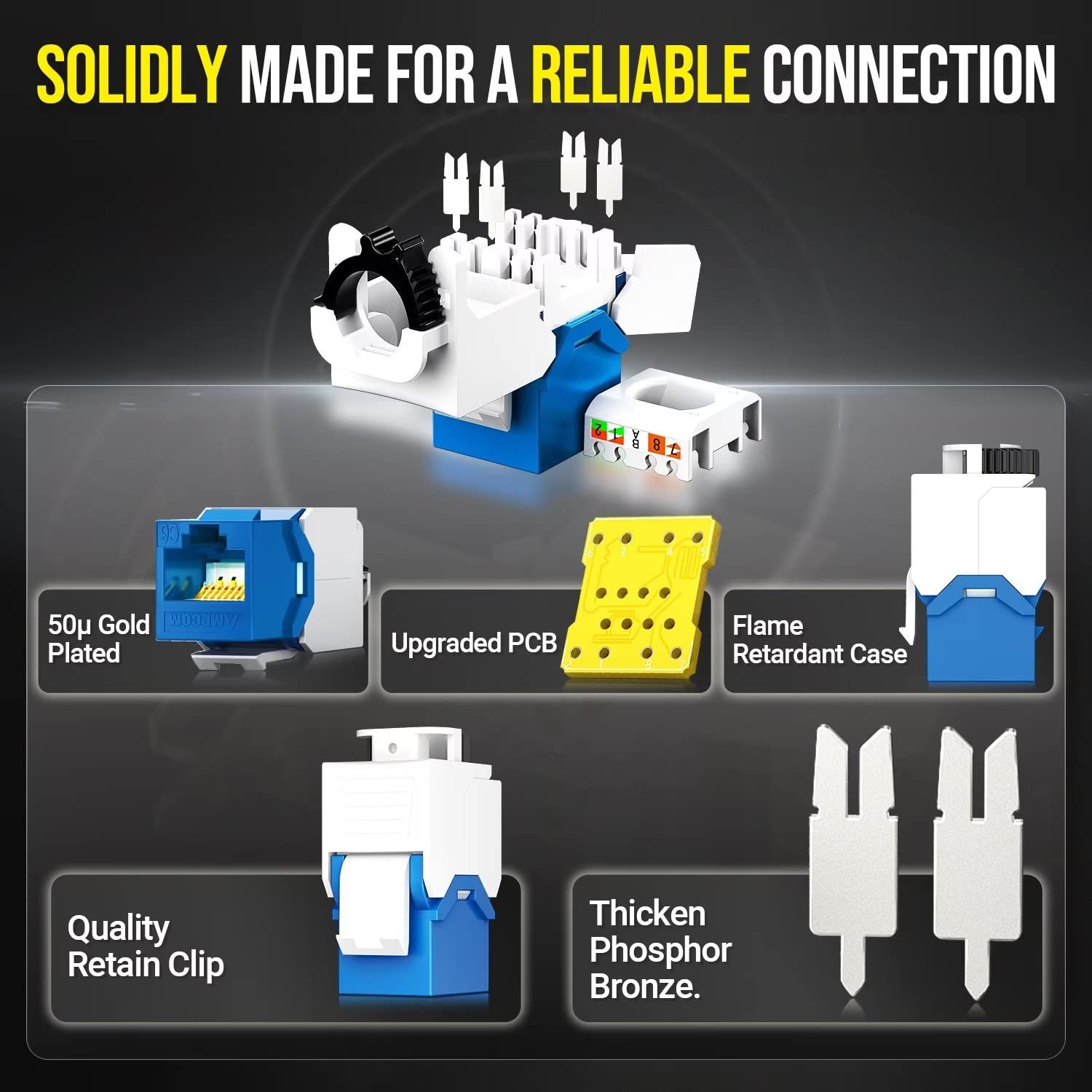 - 【Well-terminated Contacts】50u gold plated contacts enhance conductivity, prevent oxidation, and ensure a secure and reliable connection by aligning straight with the RJ45 port pins for a snug and firm fit