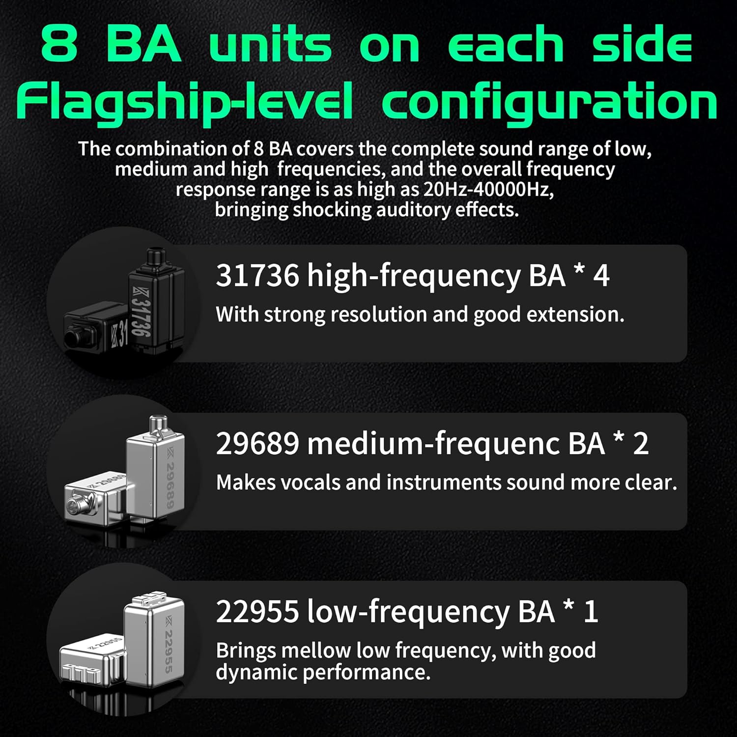 - 【Advanced Metal Inlay Resin Process】Comprehensive advancement of aesthetic genes.The combination of diamond cutting elements and metal-plastic lamination technology creates a double feast of texture and appearance.16 units balanced armature earphones bring you near-real auditory experience on the spot.