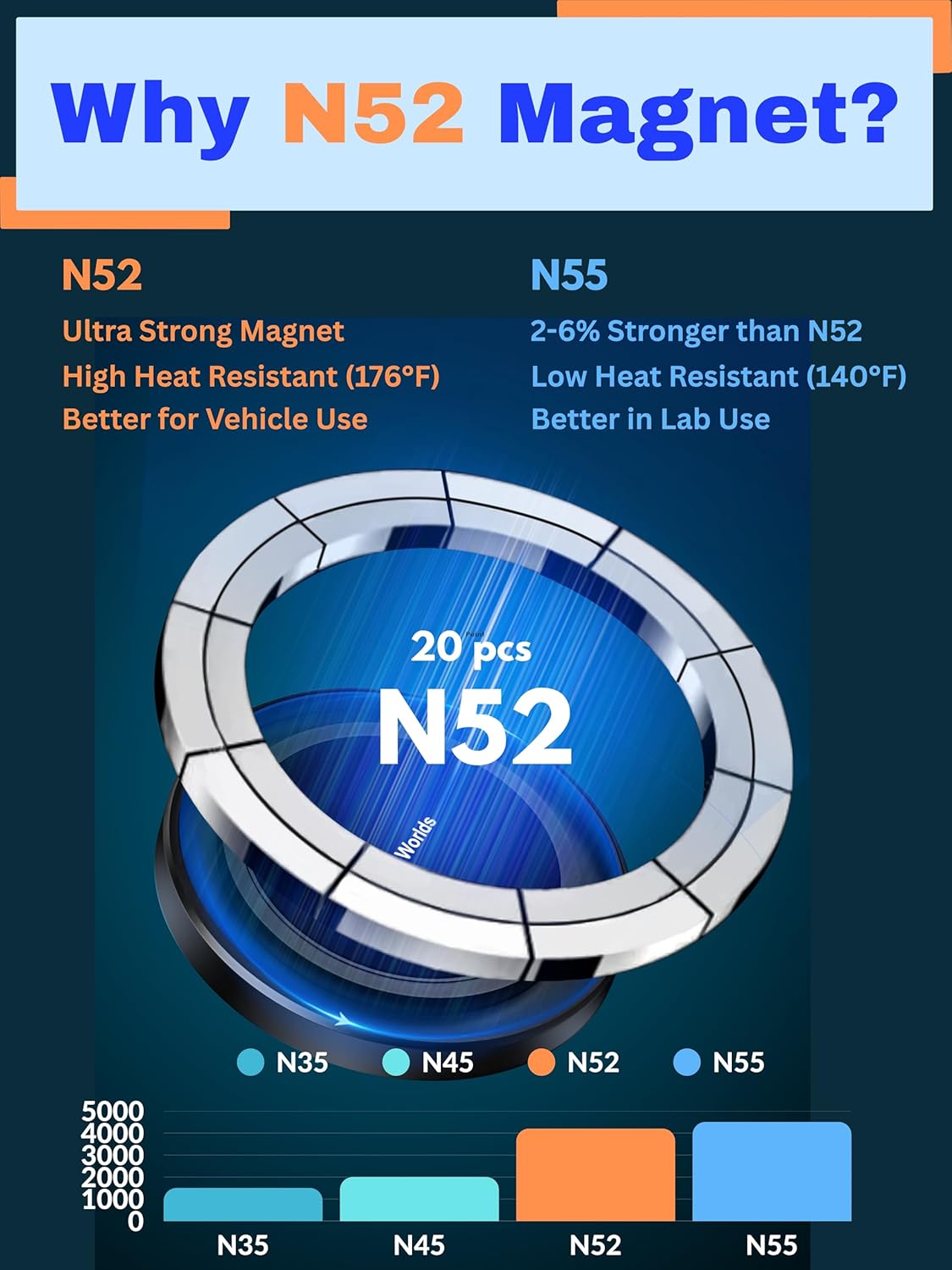 - EXPERIENCE UNMATCHED MAGNETIC STRENGTH - Custom-engineered with 20-PCS N52 magnets, our Cup Phone Holder for Car securely holds your phone in place, no matter how bumpy the ride gets.