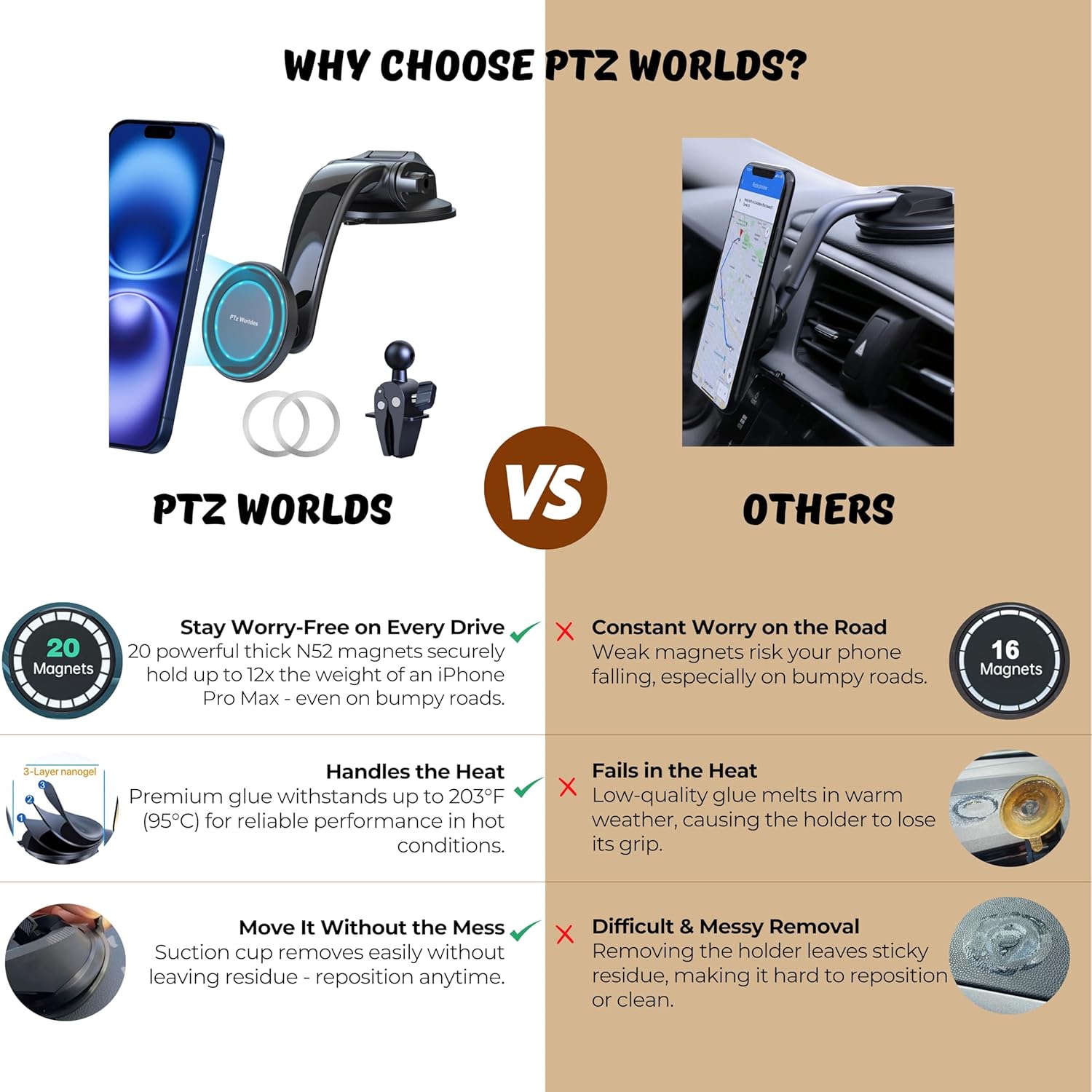 PTz Words for MagSafe Car Mount - Magnetic Phone Holder for Car, Suction Cup, High Heat Resistant, Super Strong Magnets, Compatible with iPhone, Galaxy & Other Smartphones