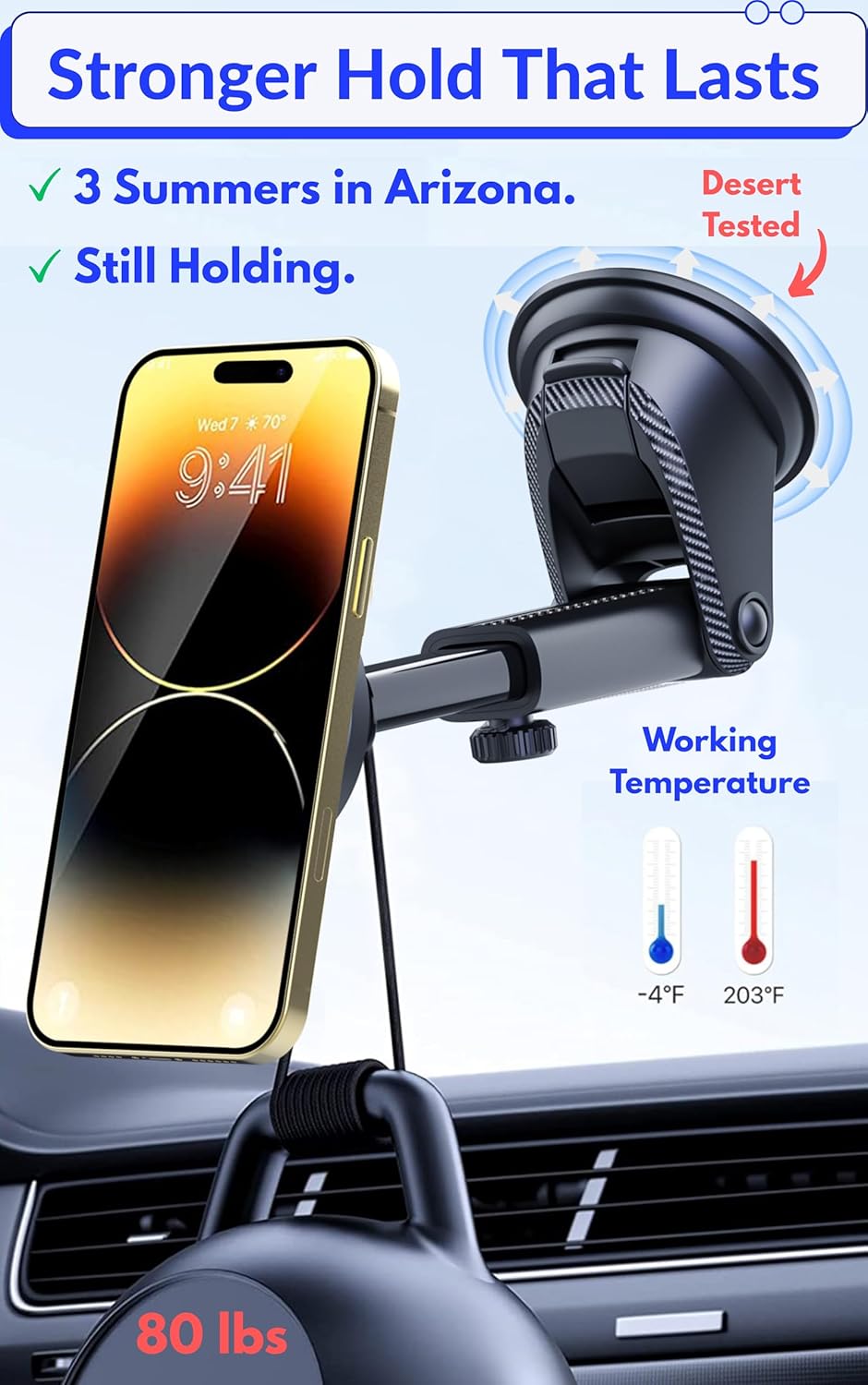 PTz Words for MagSafe Windshield Mount - Magnetic Phone Holder for Car, Suction Cup, High Heat Resistant, Super Strong Magnets, Compatible with iPhone, Galaxy & Other Smartphones