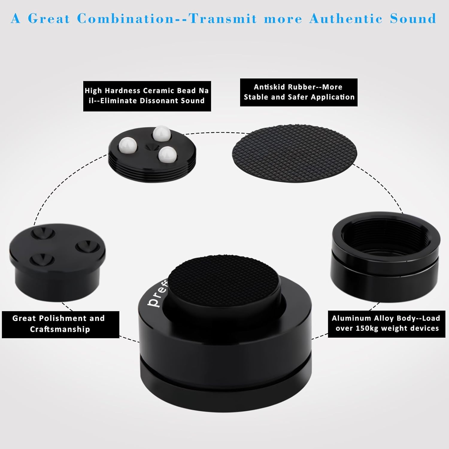 Preffair 4 Pcs Turntable Anti-Vibration Isolation Feet Speaker Feet Isolators Subwoofer Shock Absorber Stand Speaker Cone Pads with Ceramic Beads for DAC Recorder, HiFi Amplifier (Aluminum Alloy)