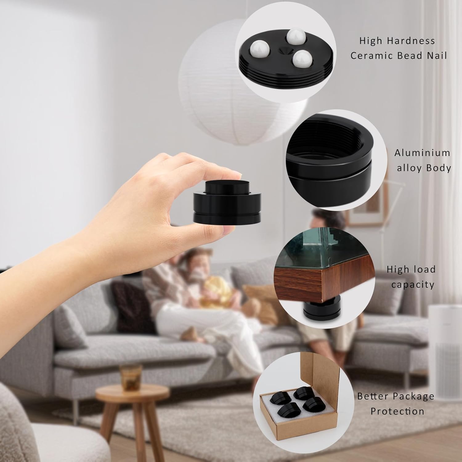 - SUPERB CRAFTSMANSHIP -audiophile speaker isolation feet are made of high quality aluminum alloy. With high hardness and density,they have low harmonic vibration point and high damping, can manage the energy of the speaker to reduce vibrations resonating through the supporting surface and internal reflection to eliminate dissonant sound.