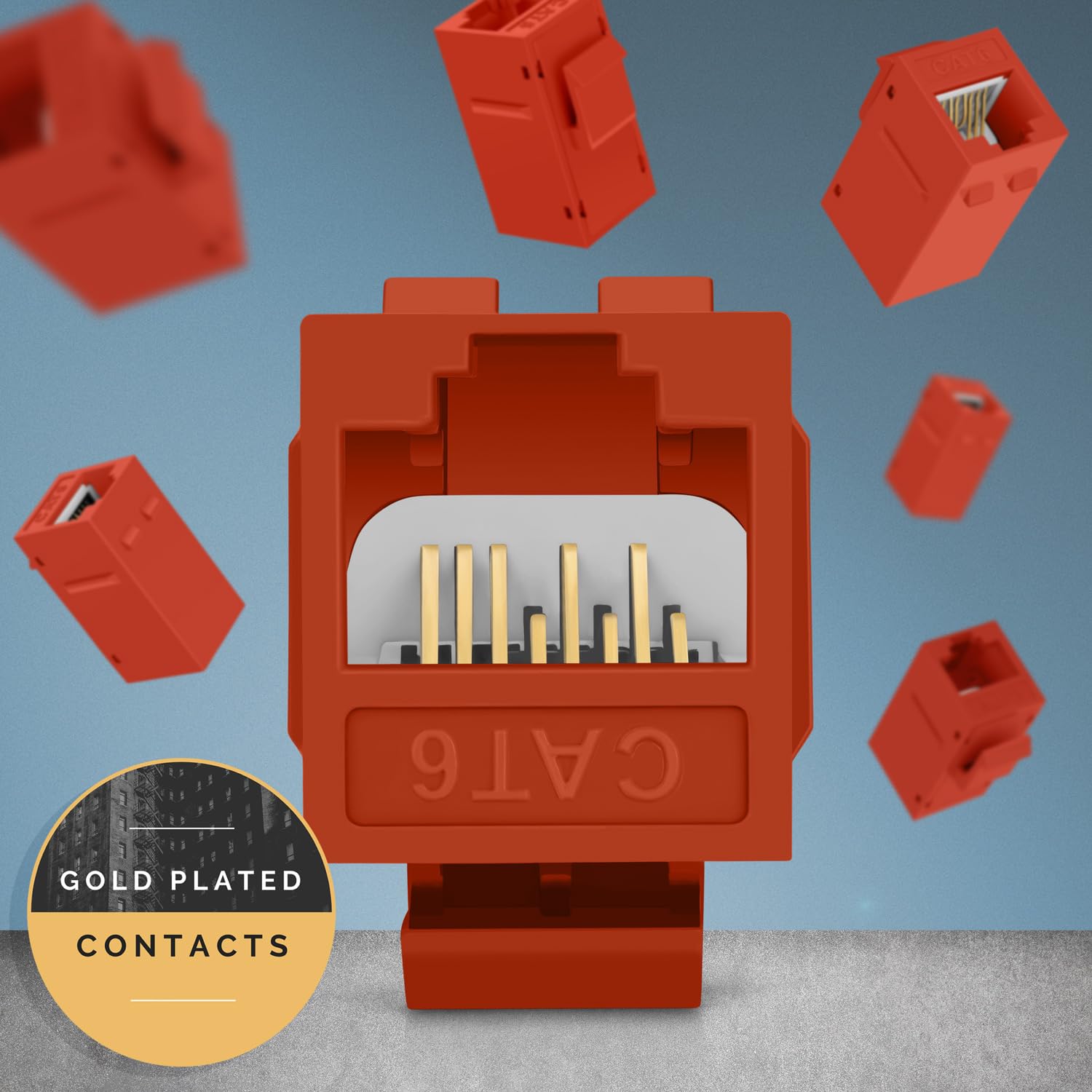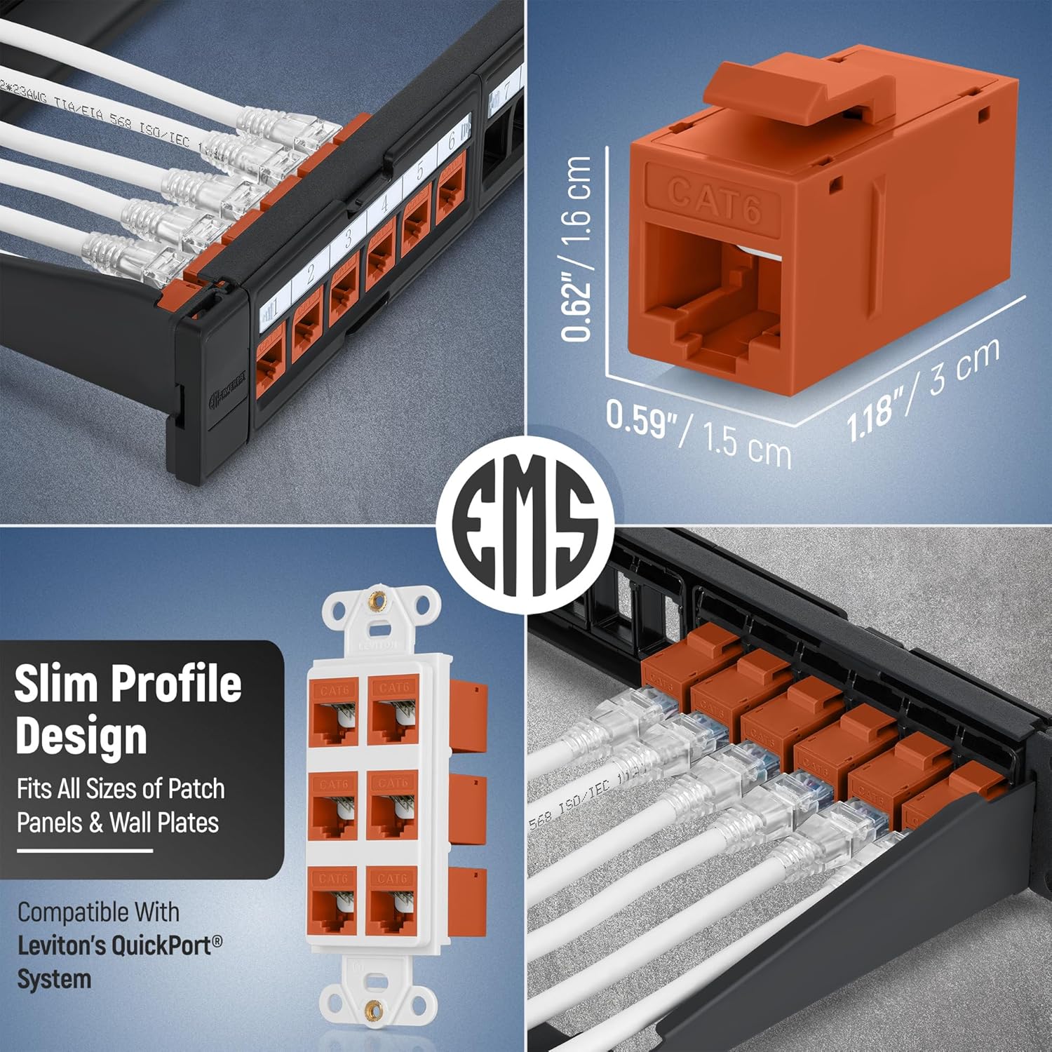 Everest Cat6 RJ45 Keystone Coupler (24-Pack) in Orange - RJ45 Coupler - Cat 6 Couplers - Female to Female Cat6 Keystone Jacks - Ethernet Couplers - Ethernet Cable Extender