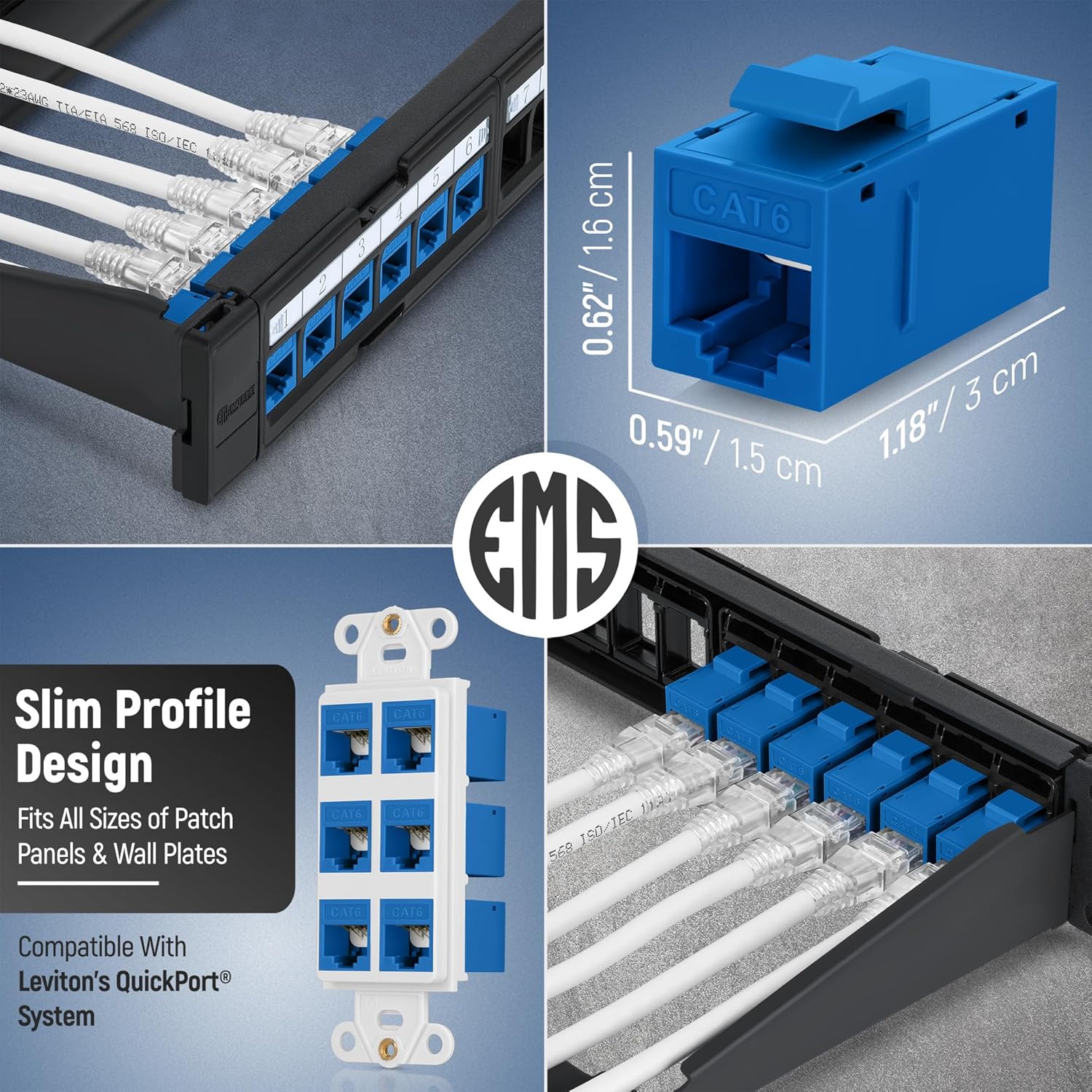 Everest Cat6 RJ45 Keystone Coupler (12-Pack) in Blue - RJ45 Coupler - Cat 6 Couplers - Female to Female Cat6 Keystone Jacks - Ethernet Couplers - Ethernet Cable Extender