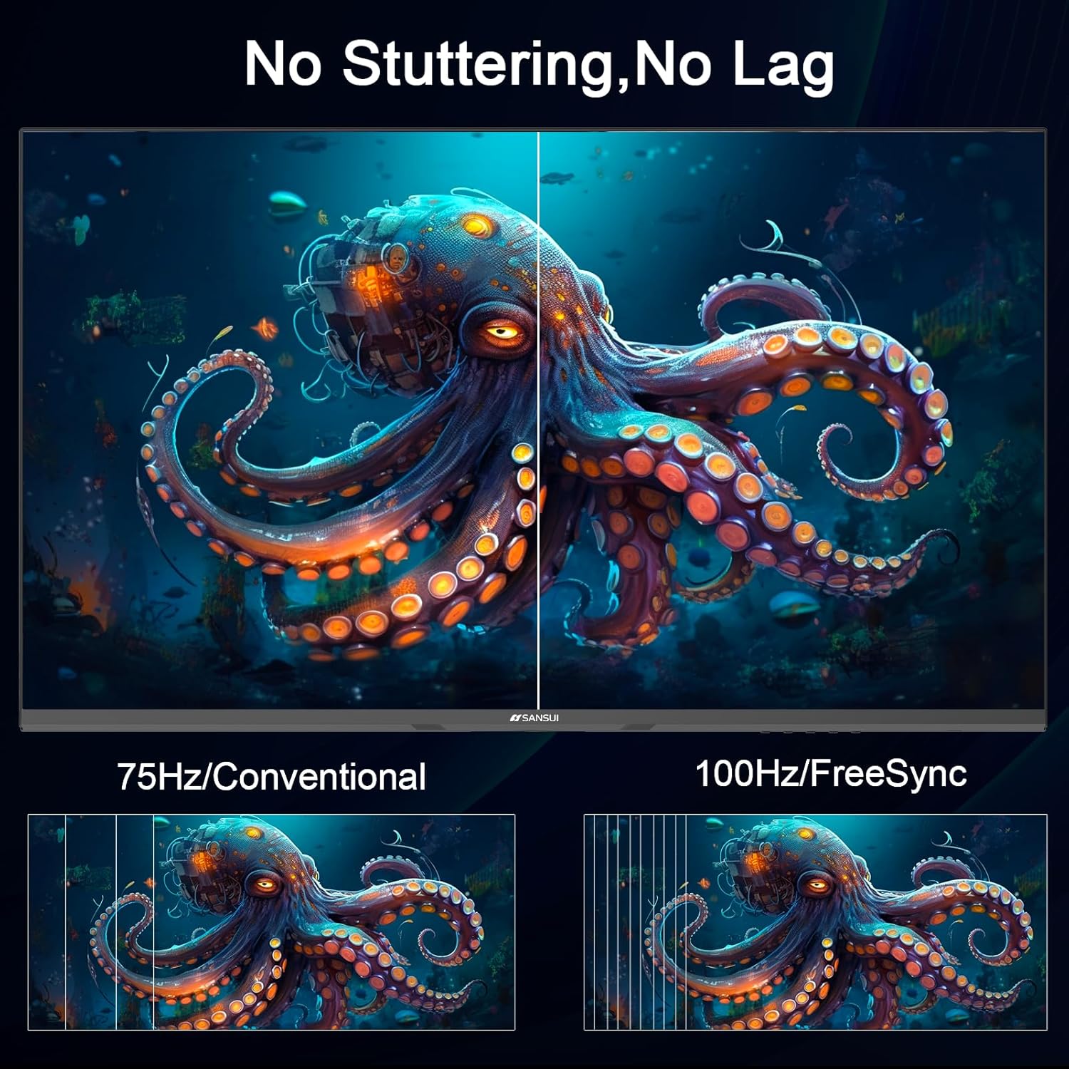 SANSUI 24 inch Monitor, IPS Display FHD Computer Monitor, 100Hz Monitor VESA Mount with HDMI Inputs for Home Office (HDMI Cable Included)