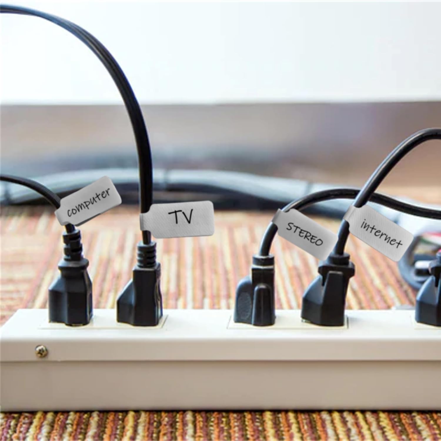 - MAKES ID A SNAP - Everybody has a bunch of electronic cables they can't identify, whether they're plugged into stuff or gathering dust at the bottom of a drawer... You may get really sick of it taking half an hour to figure out what was what every time. Use these to label all your cords at the power strip, from larger HDMI to the much slender iPhone charger so you know what you're unplugging under your desk or behind your furniture. NEVER unplug the wrong thing!