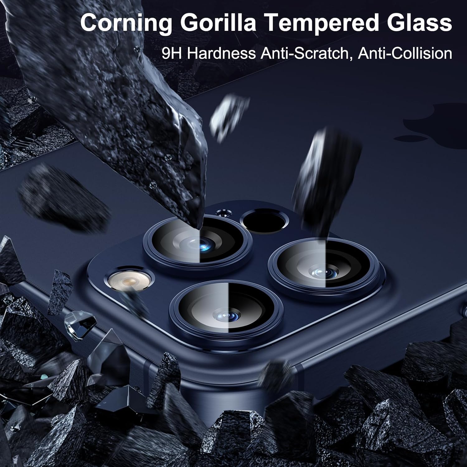 Esanik 2 Pack for iPhone 15 Pro/iPhone 15 Pro Max Camera Lens Protector (Blue Titanium)