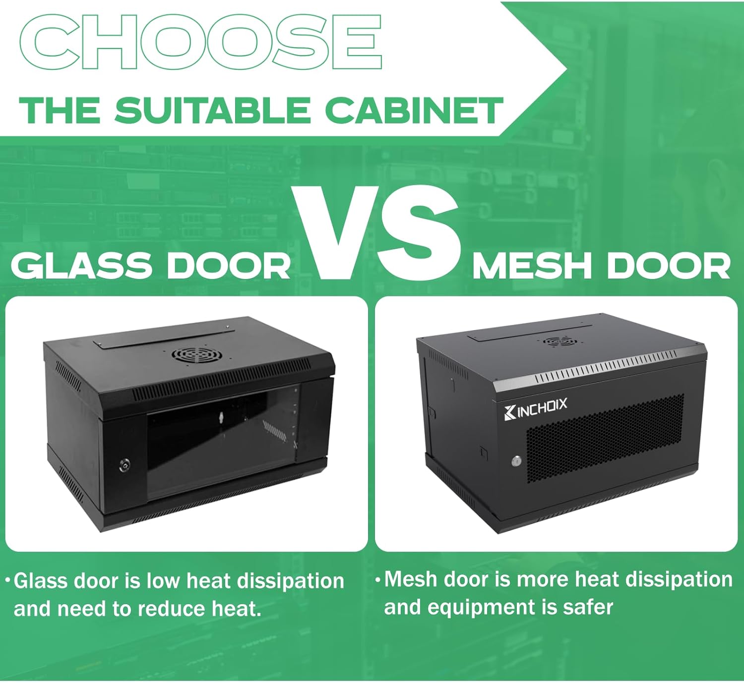 - š Ventilation Design: There are ventilation holes on the top and front door of the 6U server cabinet, and mesh design on the sides to increase airflow and prevent equipment from overheating.