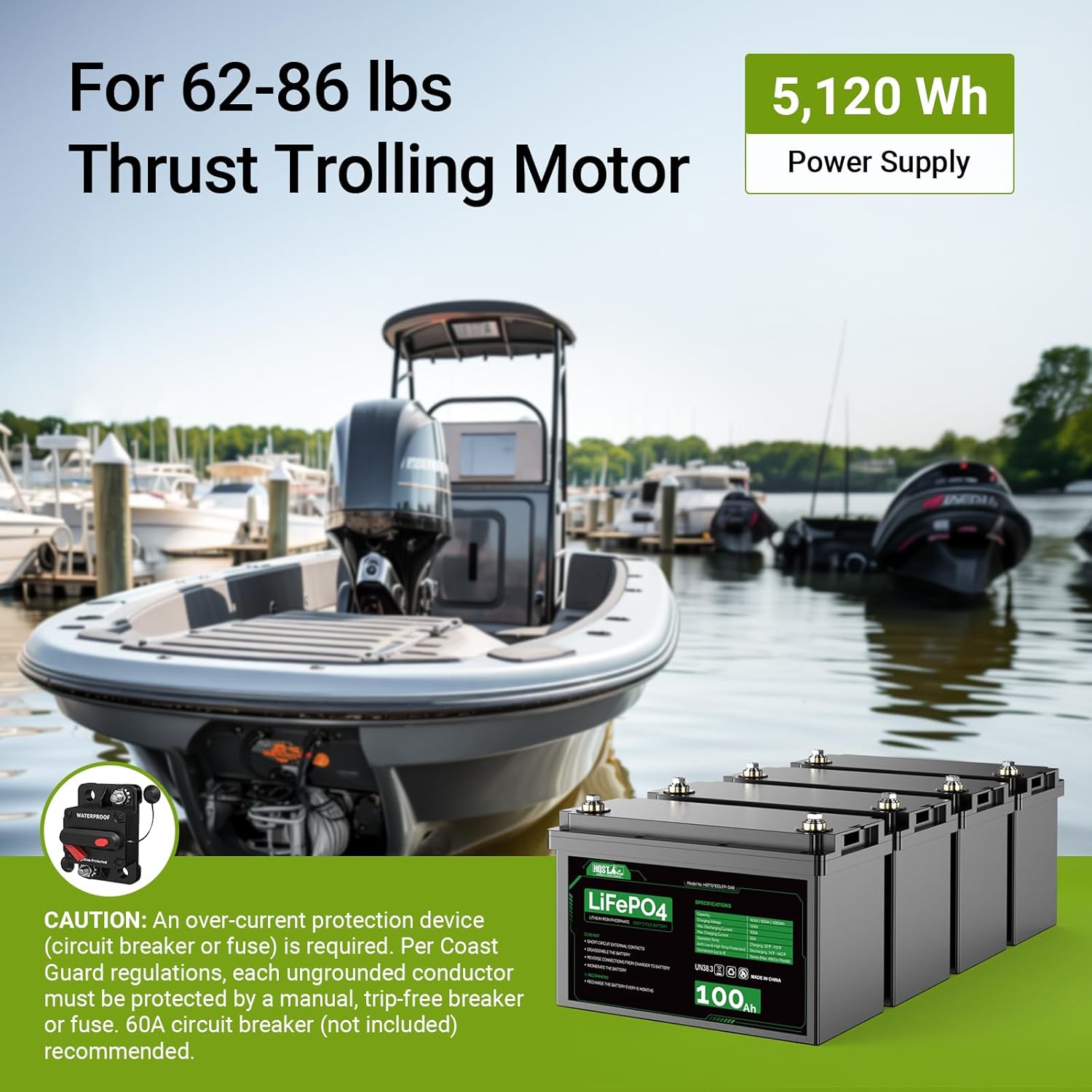 HQST LiFePO4 Battery 100ah Lithium Battery, 12V Lithium Iron Phosphate Battery Deep Cycle Marine Battery, 10 Year Lifetime with Low & High Temp Protection for RV, Trolling Motor, Boat-4 Pack