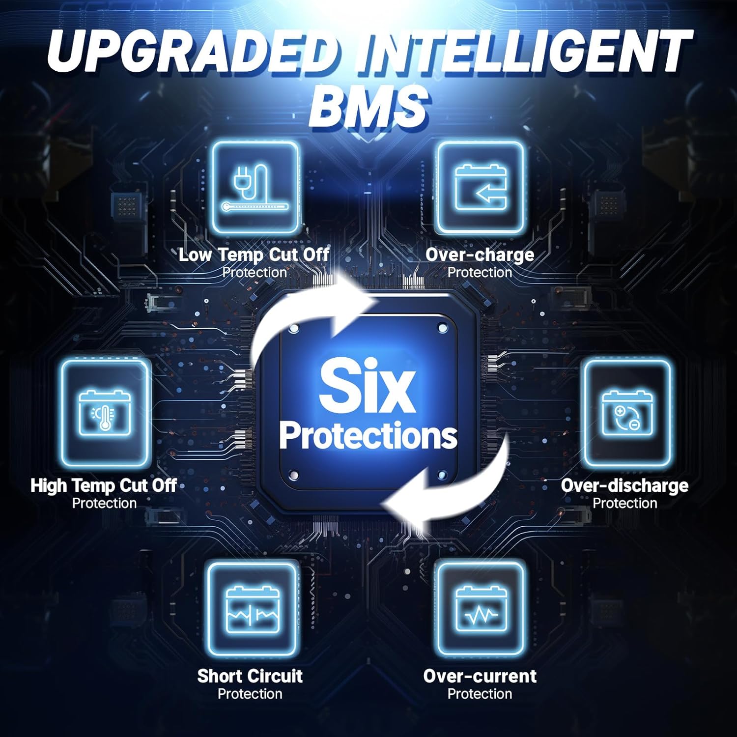 - Low Temp Cut-Off Protection: The 12.8V 200Ah LOW-TEMP LiFePO4 battery has built in 100A BMS and supports Low Temperature Charging Protection (LTCP), where the BMS stops battery charging when the battery temperature falls below 32℉(0℃) and resumes charging when the temperature rises above 41℉(5℃). Apart from that, it can also stop discharging when the temperature drops to -4℉(-20℃).