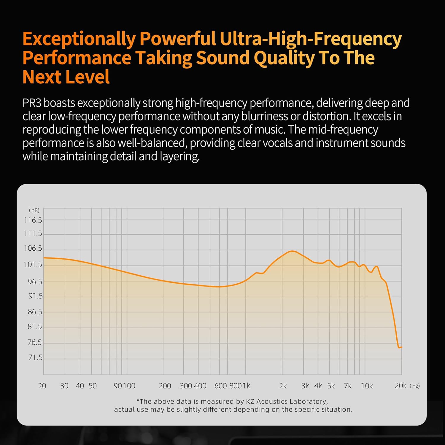 - 【13.2MM Planar Magnetic Driver】 KZ PR3 iem headphones are equipped with a new 13.2mm planar driver with far better high frequency and ultra-high frequency response than traditional balanced armature and dynamic units. it boasts exceptionally strong high-frequency performance, and delivers distortion-free deep and detailed low-frequency output. The mid-frequency range is well-balanced, providing clarity for vocals and instruments with maintained detail and layering.