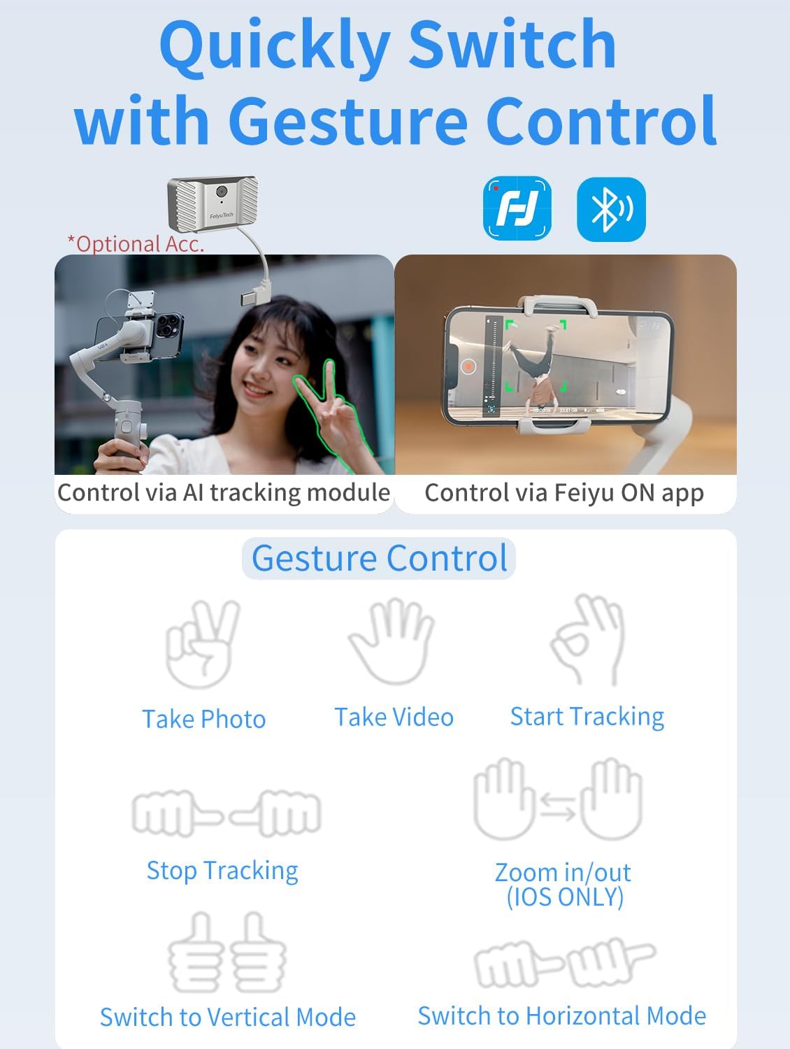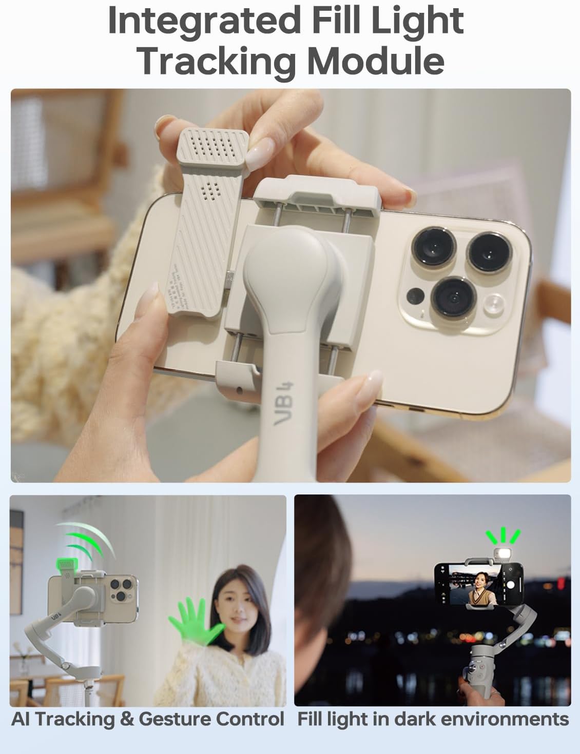 FeiyuTech VB 4SE Kit-Phone Gimbal Stabilizer with Bag,Lighting Enabled Tracking Module, Phone Gimbal for Video Recording,Gesture Control, Fit iPhone&Android,Vertical Shot for YouTube,TikTok,Max 0.69lb