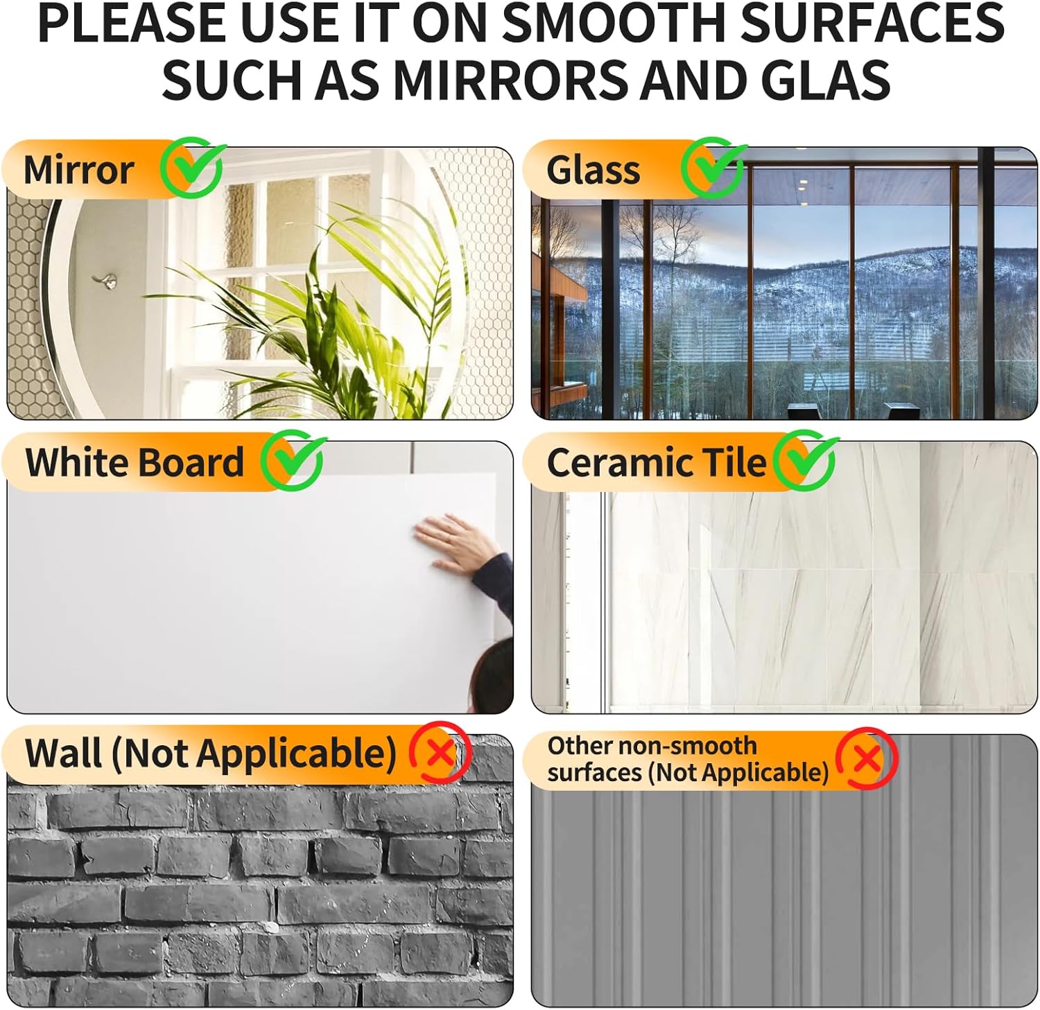 - 【Notice】Wash with water before use, or wipe clean the surface of the silicone suction cup with a wet towel or paper towel, the adhesion will be stronger and last longer. Fine dust and hair as well as non-smooth surfaces will affect the adsorption force and lasting time of the silicone suction cups.