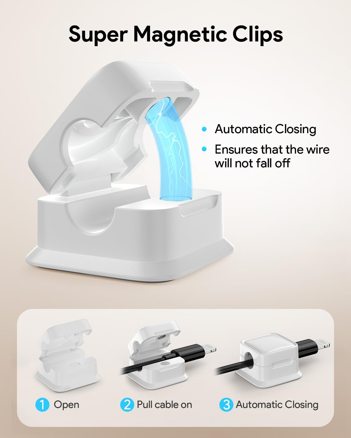 - Magnetic Locking & No Falling Off: Secure magnetic grasp opening and closing allow easy cord in,and powerful magnetic lock the organizer firmly to hold any charging head without falling off, more convenient to pull the cables out for smoothly using