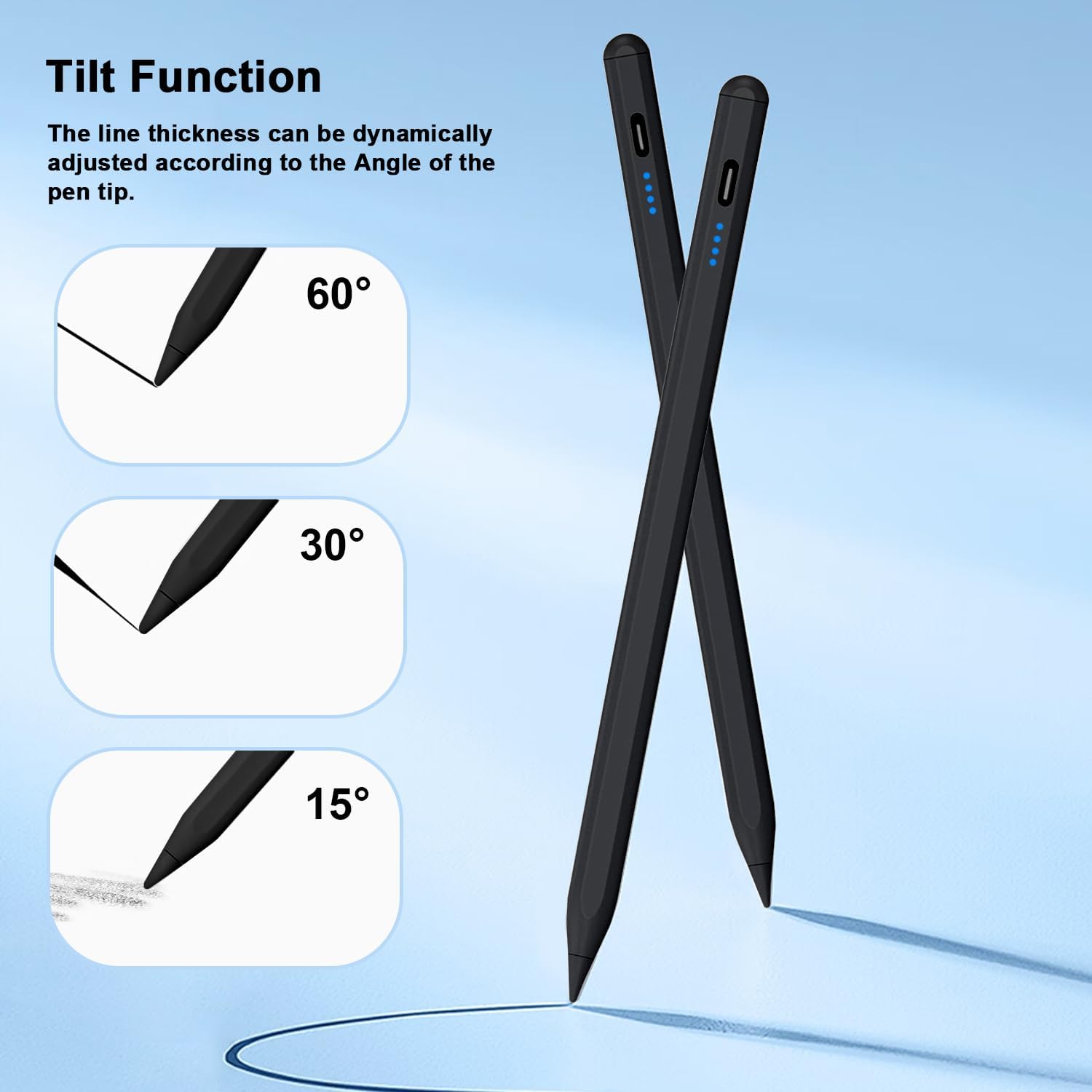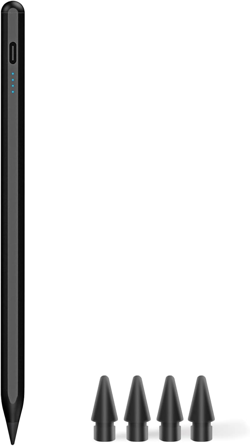 Stylus Pen for iPad 9th&10th - Type-c Charging Pencil for ipad Palm Rejection Active Pen Compatible with (2018-2025) Apple iPad 6/7/8/9/10/11(A16), Air 3/4/5/M2/M3, Mini 5/6, Pro 11"/12.9"/M4(Black)
