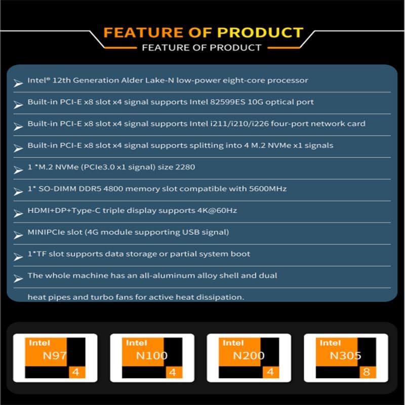 CWWK Intel Alder Lake N100(4C/4T Up to 3.4GHz)/N305(8C/8T Up to 3.8GHz) Dual SFP+10GbE Mini PC|4xIntel I226-V 2.5GbE |DDR5 Memory|PCI-E x4|HDMI+DP+Type-C (10 Gigabit N100, 32G RAM 512G SSD)