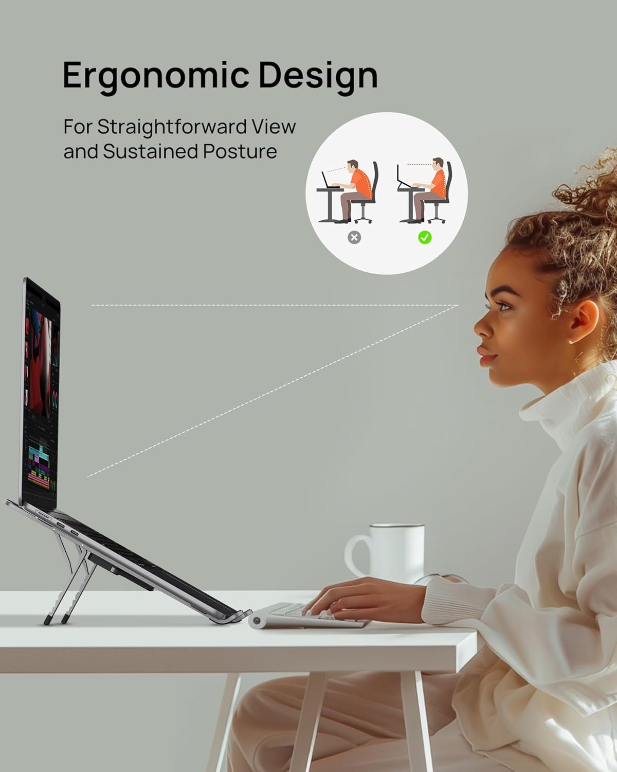 - 【Innovative & Ultra Compact】 The SODI 315 foldable laptop stand weighs only 6.1 oz (173 g) (iPhone 16 Pro Weight: 7.9 oz (199 g), and the folding size is 9.9 x 1.7 x 5.3 inches (249.6 x 43.8 x 13.6 mm), making it compact and easy to carry. Perfect for business trip, daily travel, library, cafes work, etc.