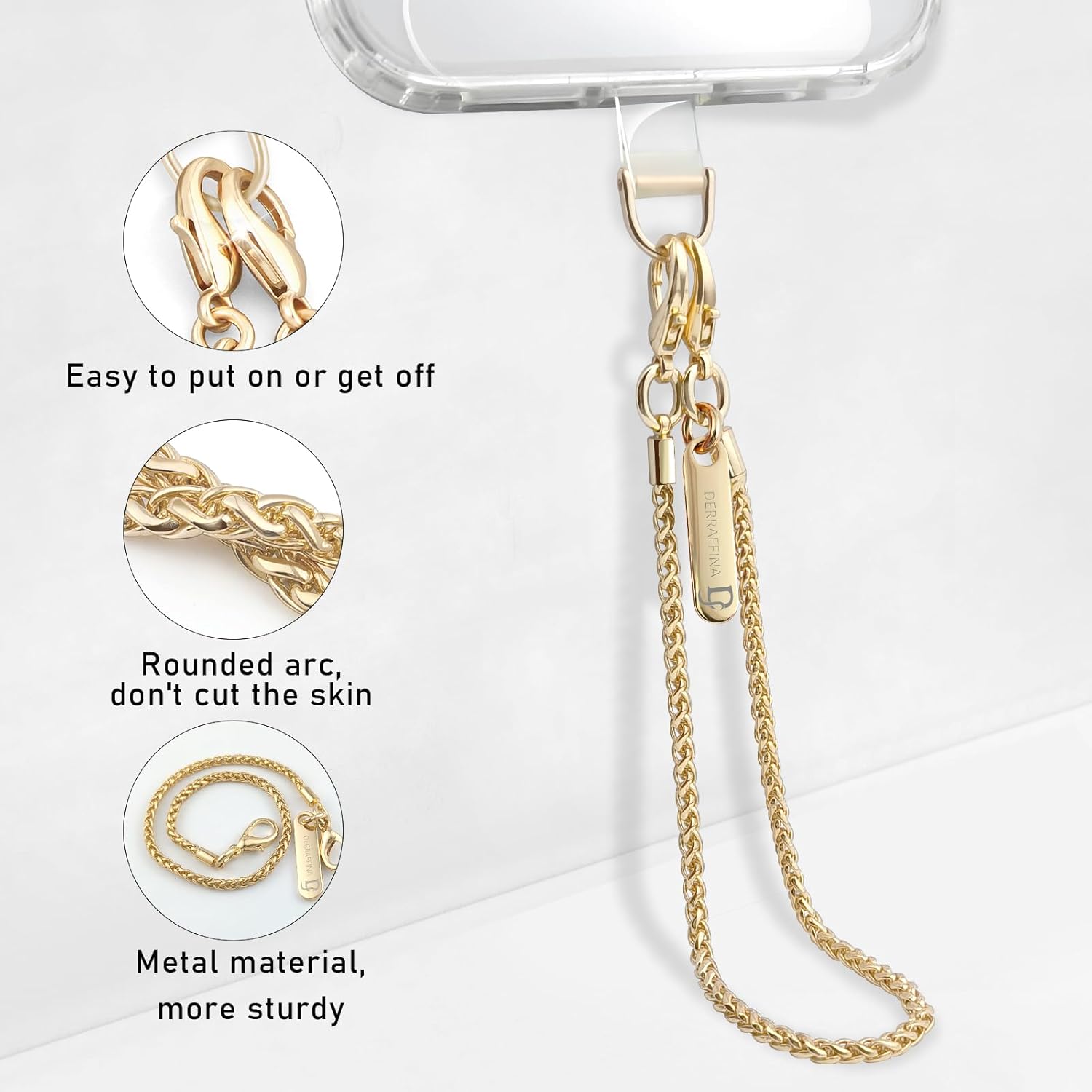 - [Premium Phone Chain Crossbody] Our colorfast, skin-friendly cell phone chain is made of high-quality metal. By adopting monolithic molding technology, the phone strap crossbody is sturdy and offers enhanced functionality. The length and weight of the crossbody phone strap and phone chain wristlet are 49.8 inches/1.72 ounces and 10.62 inches/0.49 ounces, respectively. You can get both in one pack