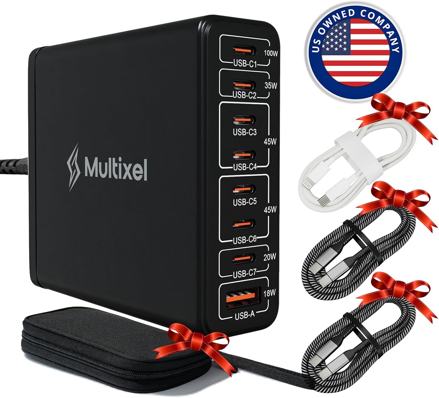 - ⚡️【 The Best Gift of Ultimate Convenience 】- Our Multi USB-C Port Charger is perfect for anyone seeking convenience and efficiency. With its sleek design and advanced technology, it makes an ideal gift for friends, family, and colleagues. Whether for birthdays, Christmas, holidays, Mother's Day, Father's Day, or special occasions, this charger is a thoughtful present that offers the ultimate in fast, reliable, and simultaneous charging for multiple devices. Show your loved ones you care by giving them the gift of the best multi device charger, staying powered up and connected, anytime and anywhere.