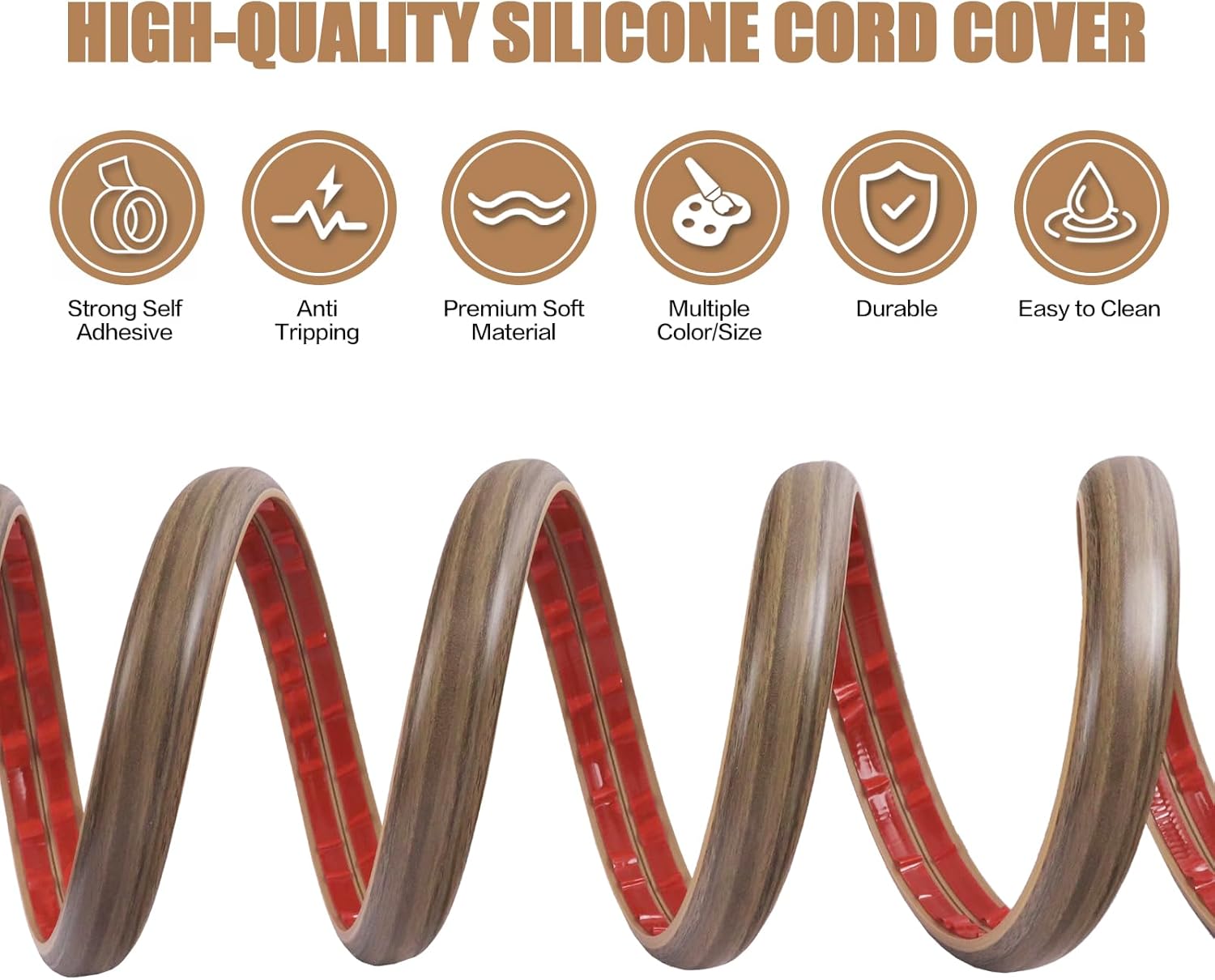Floor Cord Cover Self Adhesive Cord Hider,10FT Cable Management, Extension Strip Protector for Wires, Prevent Cable Trips for Offices, Gyms, Exhibitions Cavity:0.47"(W) x0.35(H) Woodsmokedbrown