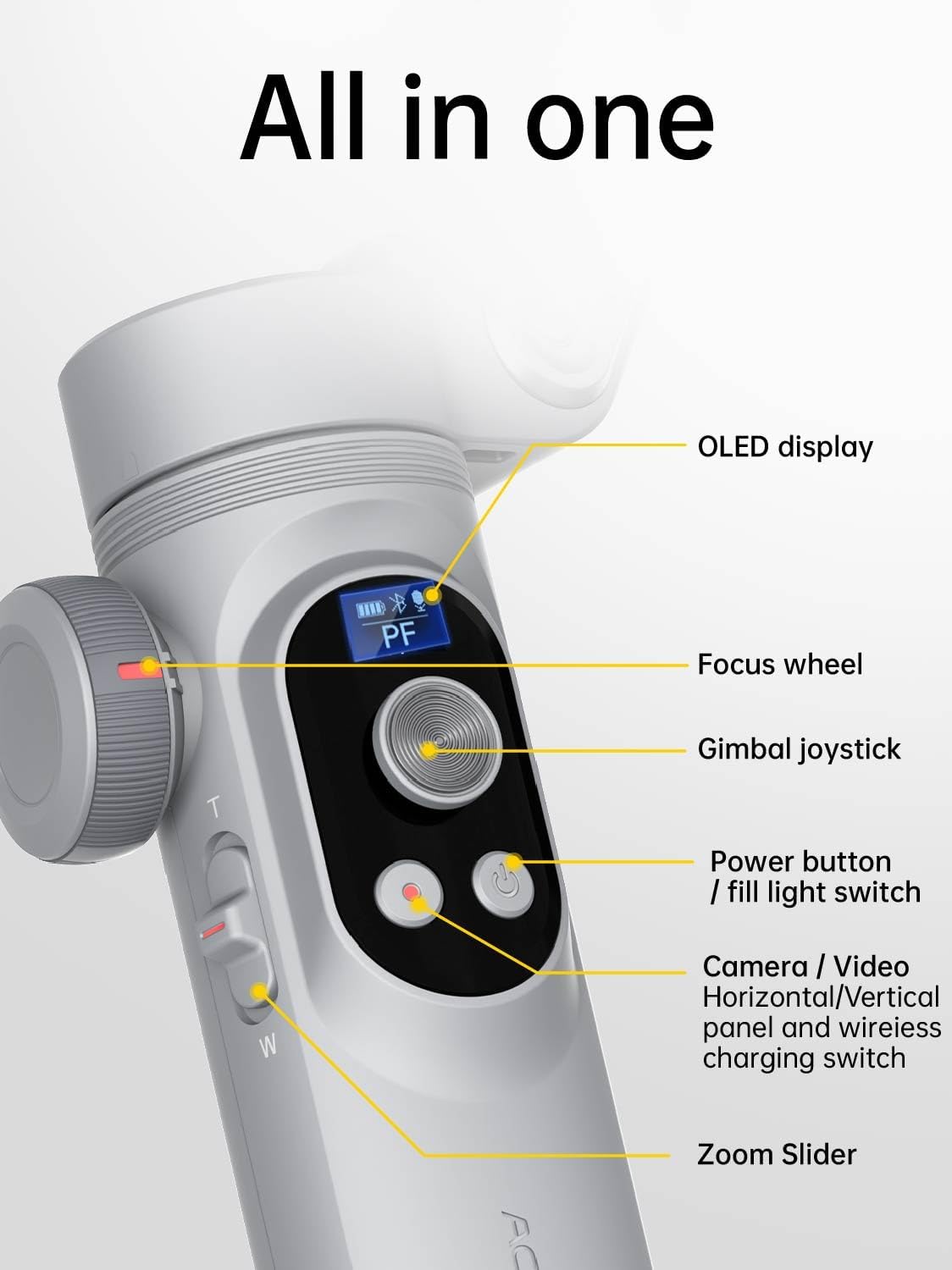 - High-Definition OLED Display: Stay informed about gimbal battery life, shooting modes, and Bluetooth connectivity while filming through real-time status updates on the vibrant OLED display. Meanwhile, our gimbal has a built-in fill light with 3 levels of adjustable brightness up to 6000 lux and color temperature up to 5500k CCT, customize the lighting to suit your scene, ensure moments are captured clearly regardless of lighting conditions