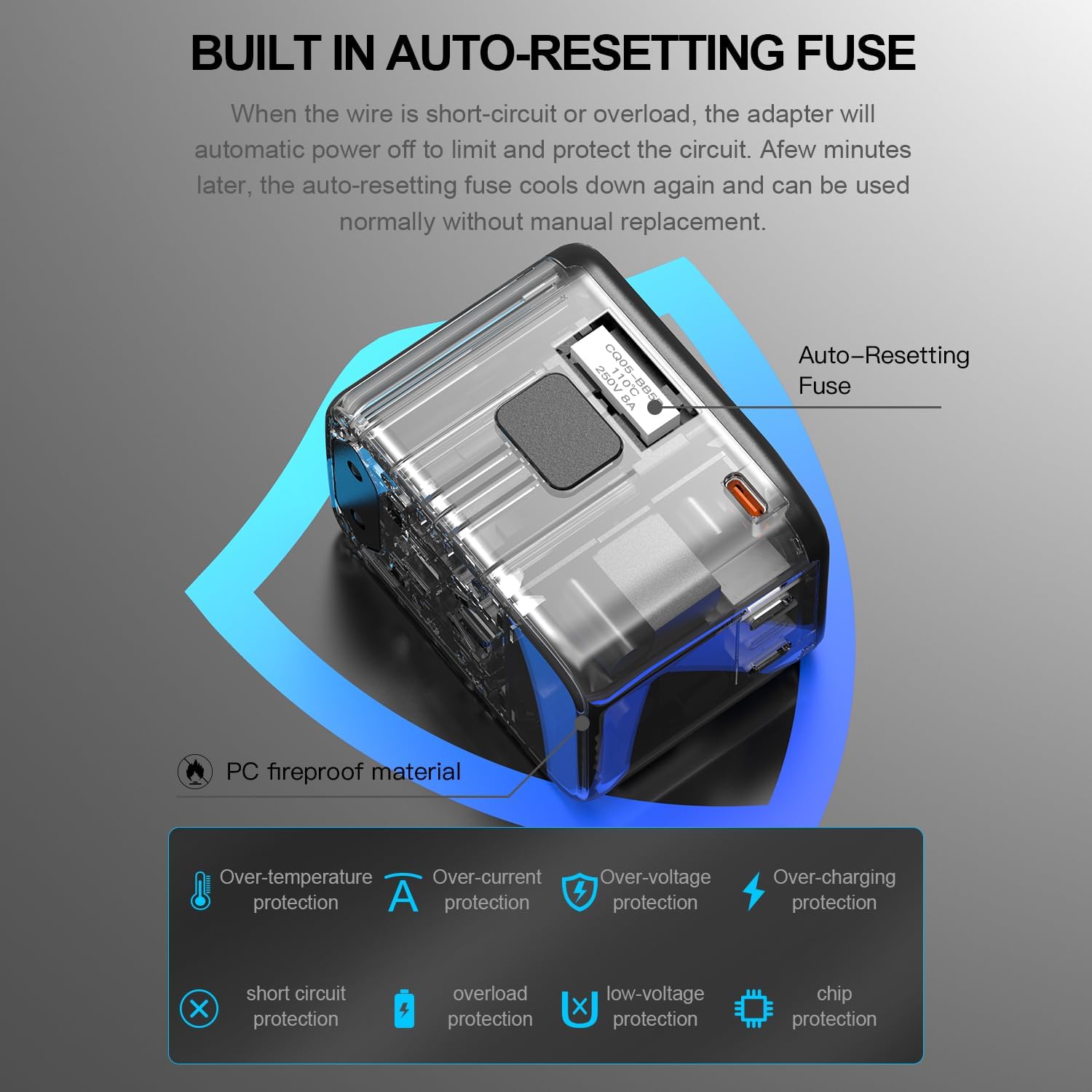 - MULTI SAFETY PROTECTION & CERTIFIED: HAPOW travel adapter certified by FCC and CE. It is built in an advanced auto-resetting 10A fuse to protect your devices from short circuit, overload, overcurrent, over temperature, etc