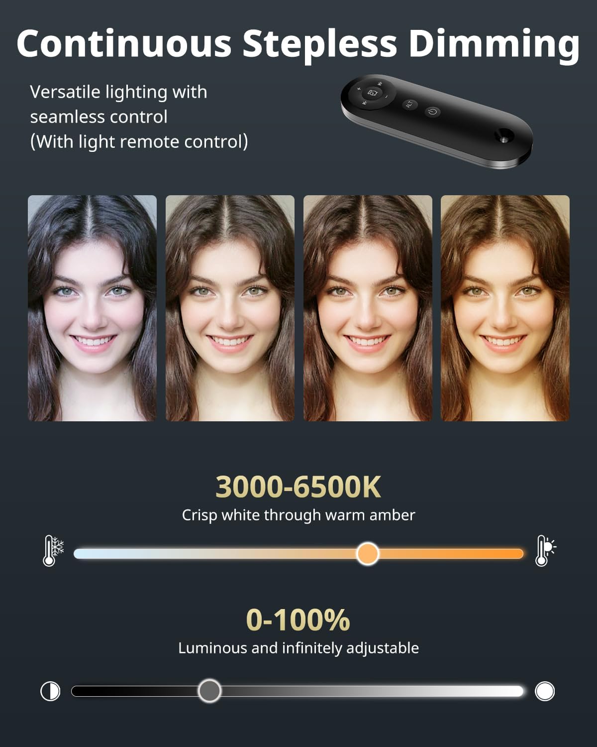 - 【Advanced Side Emitting Technology】The side-emitting design effectively diffuses light, reducing shadows and providing a more even illumination. By combining side-emission with stepless dimming, it enhances the natural appearance of skin tones, making it ideal for beauty and photography applications that require precise color accuracy.