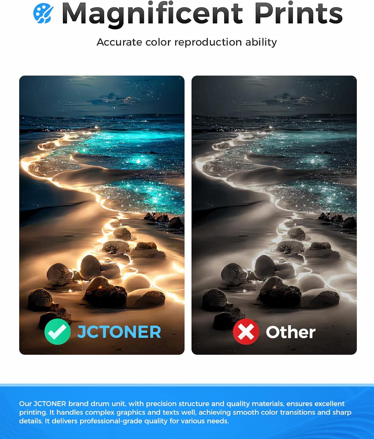 - The latest chip version: The JCTONER toner cartridges are equipped with the latest version of built-in chips, ensuring perfect compatibility between each toner cartridge and the printer. This enables you to print efficiently while maintaining stability and reliability, making installation convenient without the need for manual adjustments. All JCTONER toner cartridges have undergone strict quality testing and have obtained ISO9001 certification. High-quality toner cartridges can meet the demand for high printing volume. The fine toner ensures clear and stain-free printing results and extends the lifespan of the printer. You can purchase with confidence.