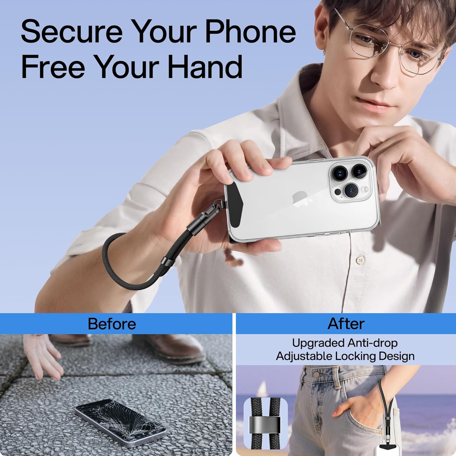 - 【 Easy to use & Universal Compatibility 】 The adjustable wrist lanyard for phone offers hands-free convenience while keeping your phone close and secure. Compatible with iPhone 15, 15 Pro, 15 Pro Max, 14, 14 Pro, 14 Pro Max and all other smartphones.