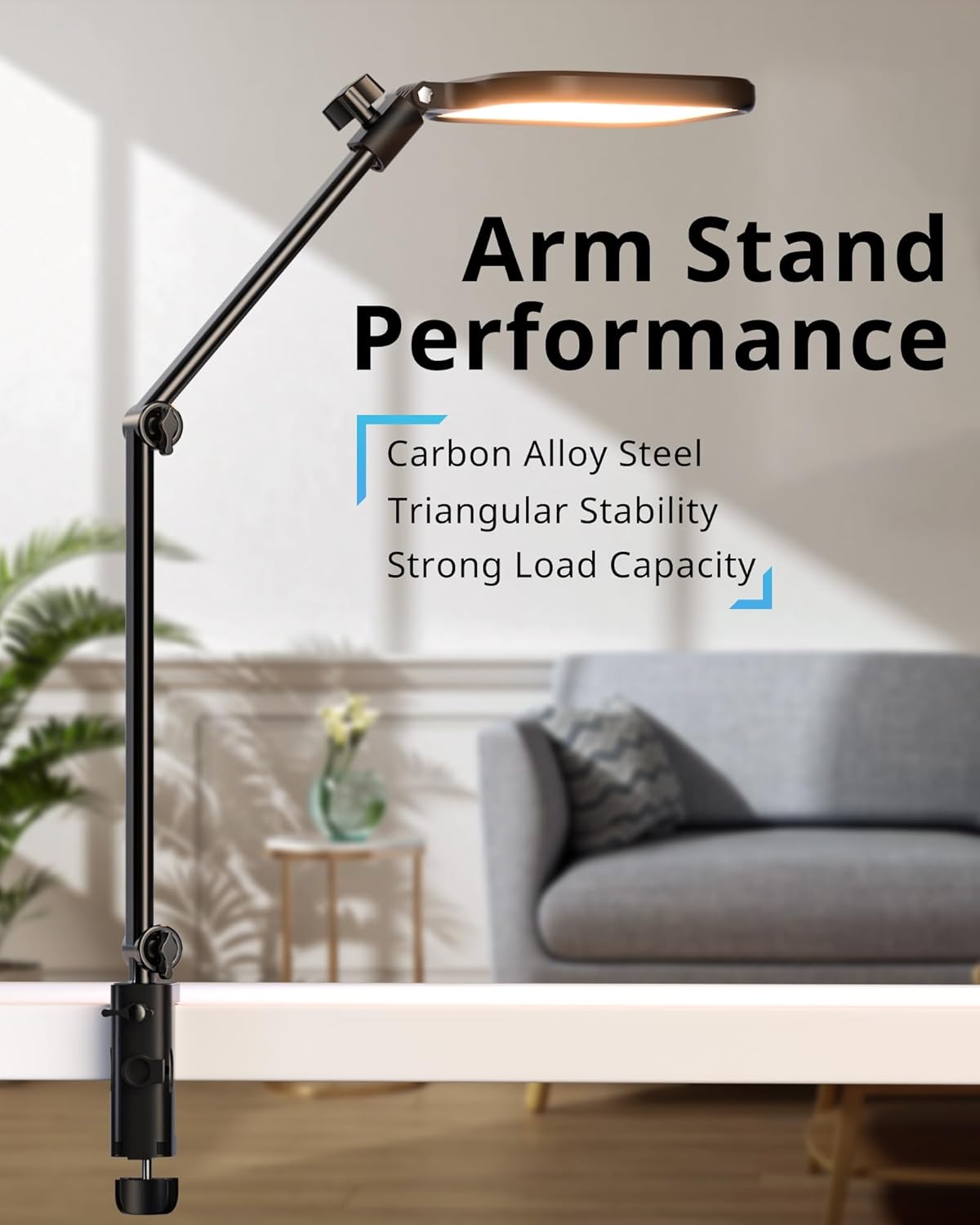 - [Rotatable and Modern Lamp] The arm design allows for flexible rotation at multiple positions, enabling users to easily adjust the lighting angle. The lamp head can rotate 180 degrees, allowing for quick changes in light direction to suit different activities. Made from carbon alloy steel, the arms provide exceptional strength and durability, reducing wobble. This modern material also adds a stylish touch, seamlessly fitting into any interior design style.