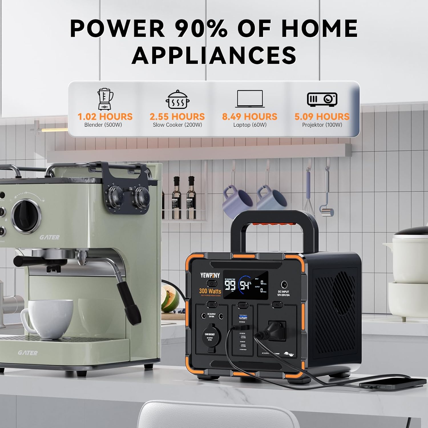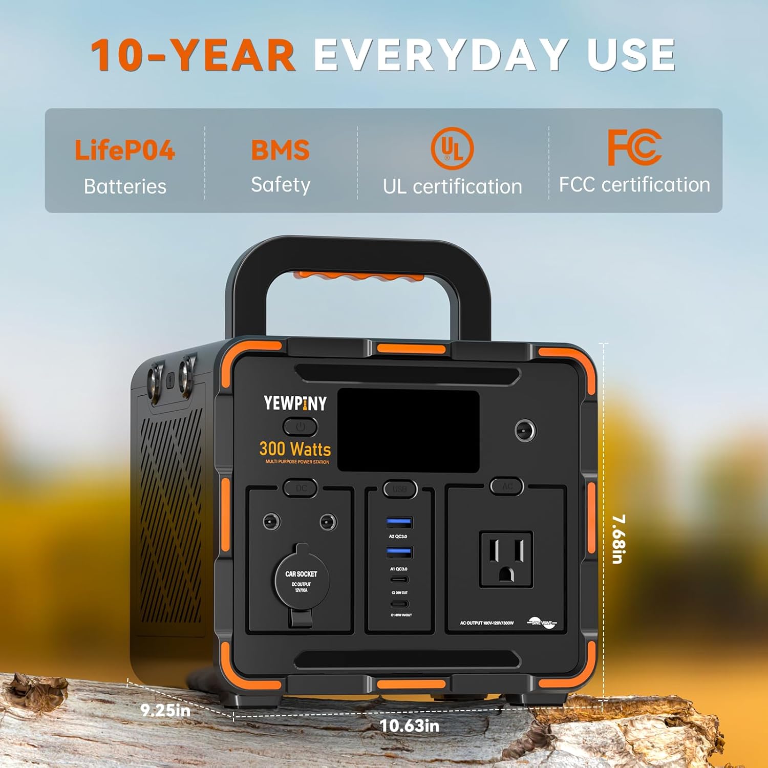 - 【Portable generators】 300W portable power station with 259WH/70,000mAh capacity, featuring 110V corrected sine wave AC outlet + 1 USB-C/2 USB-A/2 DC ports/car socket. Safely power emergency devices such as laptops, drones, mini-grids (<300W) and CPAP machines. This power station is the perfect partner for your outdoor adventure, camping, RV travelling or even home backup power!