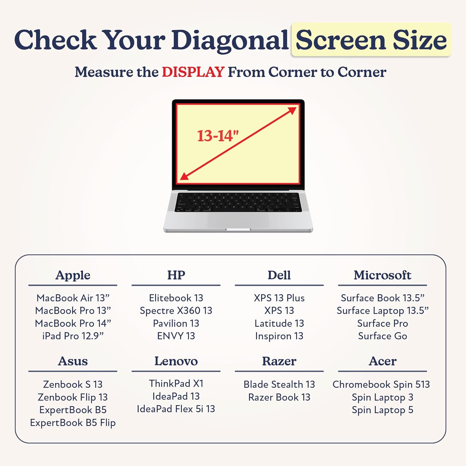 - COMPATIBLE WITH: ALL 13-13.3 inch and MOST 14 inch laptops. MacBook Pro 14 inch bag; MacBook Pro 13 inch, MacBook Air 13 inch Sleeve Case; HP Spectre 13/ENVY 13; Dell XPS 13/Latitude 13; Lenovo ThinkPad X1 13/Chromebook 14; Surface Pro/Surface Laptop