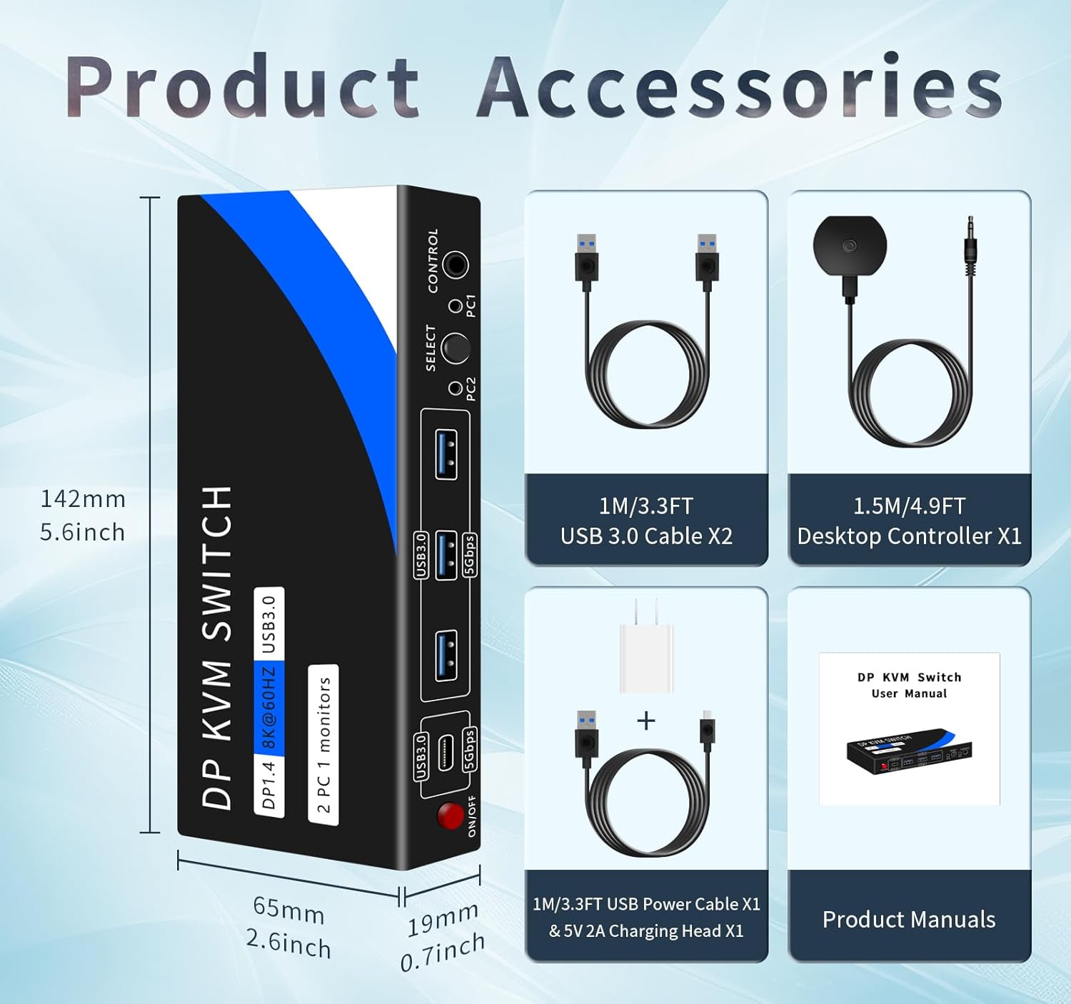 - 【Accessories Complete Package】Package includes 1* displayport KVM switch, 2* USB 3.0 cables, 1* wired controller, 1* charger and power cord, user manual. We can ensure long term peace of mind support for your displayport KVM switch. Note: The displayport cable is not included in the kit, you need to prepare 3 displayport cables in total.