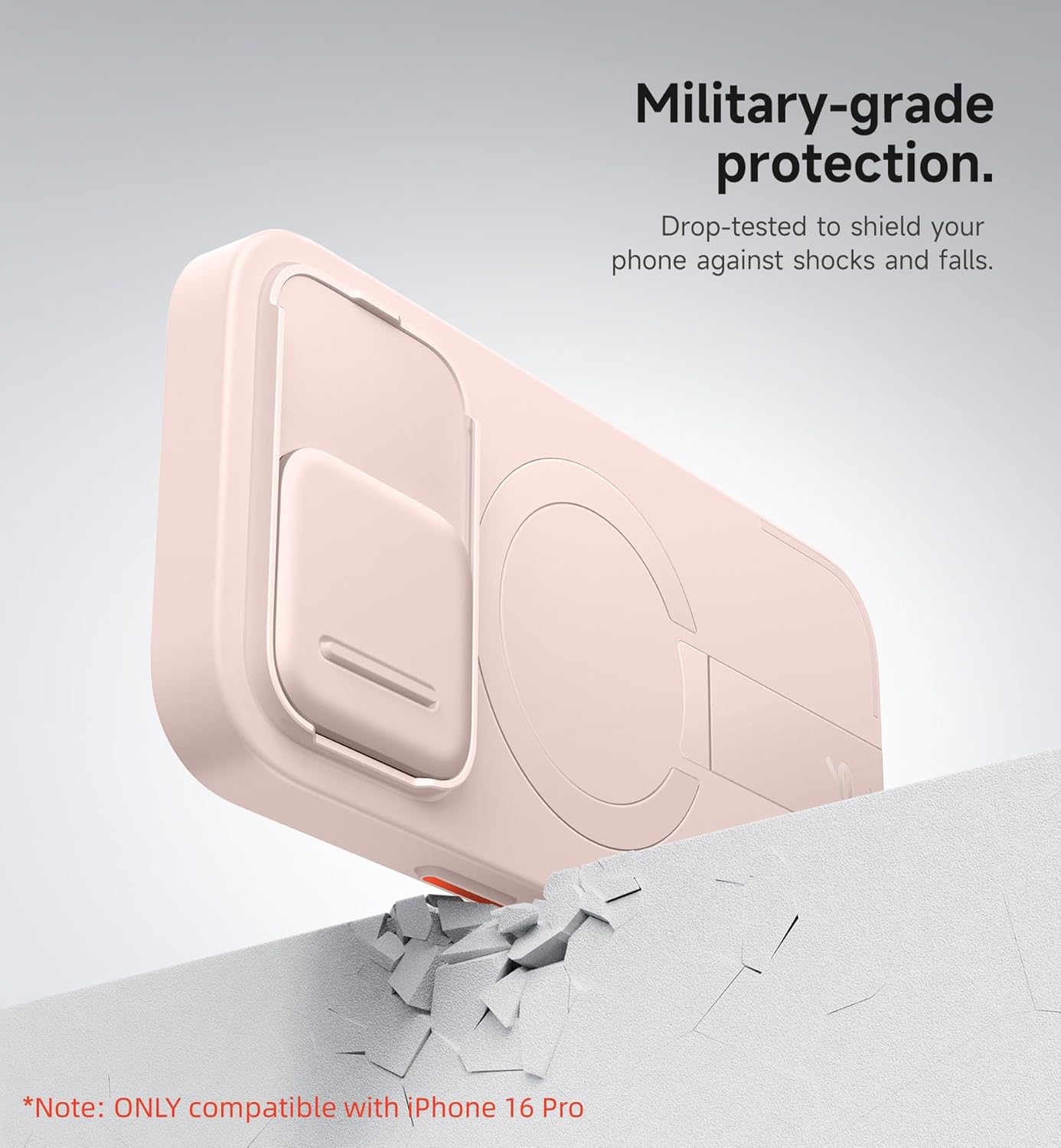 - 【Adjustable kickstand】: The built-in aluminum-alloy kickstand is tough, steady, and adjustable up to 75°. This feature is perfect for hands-free viewing of videos, reading, or video calls in both landscape and portrait orientations (ONLY compatible with iPhone 16 Pro)